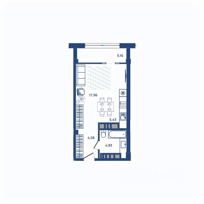 48 м² · Этаж 16 из 23