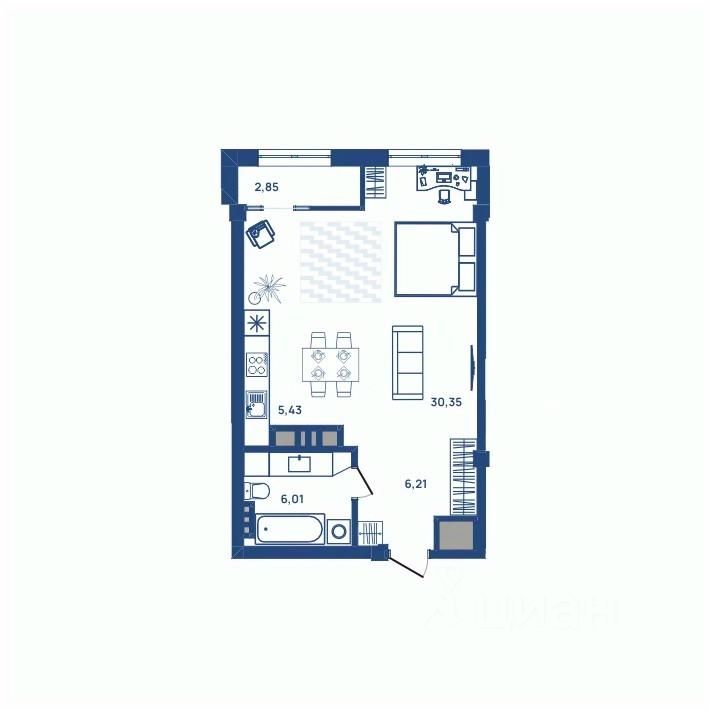 55 м² · Этаж 21 из 23