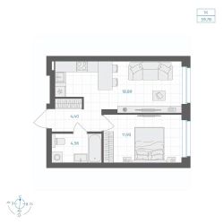 44 м2