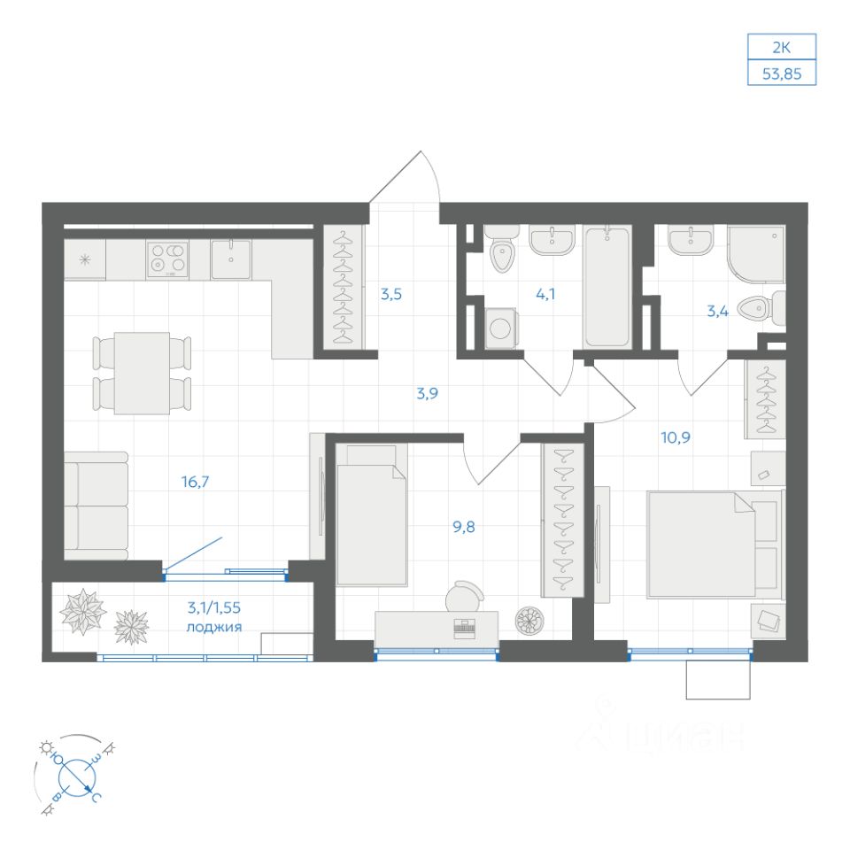 53 м² · Этаж 2 из 9