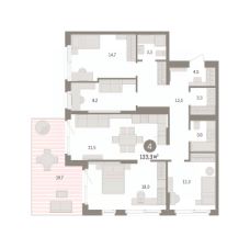 Просторная четырехкомнатная квартира с предчистовой отделкой в ЖК ''Брусника в Эльтауне'' на 1 этаже. Общая площадь: 123.3 кв.м. Высота потолков 2.7 м. Квартира находится в корпусе 5. Дом монолитный, одноподъездный, высотой 7 этажей. На этаже 8 квартир. В подъезде 1 пассажирский и 1 грузовой лифт. Окончание строительства - 4 квартал 2028 года. Оформление сделки по договору долевого участия. Квартира с кухней-гостиной и четырьмя спальнями в Брусника в Эльтауне. Особенности планировки: вид во двор, второй санузел, окна в пол, панорамное остекление, постирочная, потолки 3 м и выше, разнесённые спальни, терраса. квартиры в нашей базе: ЛТН01.1-Ж10.1.5. Квартал ''Брусника в Эльтауне'' расположился к северу-западу от Челябинска в окружении лесного массива, рядом с Лебединым прудом и Скалистым озером. Две главных слова, характеризующих Эльтаун, — концентрация и разнообразие. Его структуру формируют сразу несколько типов застройки — коттеджи, таунхаусы, квартиры в мало- и среднеэтажных домах, в перспективе нескольких лет здесь будут открыты десятки кафе, ресторанов, магазинов, аптек, медицинских и фитнес-центров. Для круглогодичного отдыха в городе построят собственный курорт.В Эльтауне будет действовать концепция непрерывного образования. Уже открыт муниципальный детский сад ''Ёлочка'' на 230 мест. В планах — инновационная школа на 1100 учеников. Кроме того, в Эльтауне организован Научно-исследовательский центр девелопмента МBA и МФТИ — одного из лучших вузов страны.Брусника стала полноправным девелопером Эльтауна. Мы построим здесь новый квартал со среднеэтажным жильём, богатым озеленением и разнообразной коммерческой и социальной инфраструктурой. Квартал Брусники расположен на въезде в город и станет его лицом. Недалеко от проекта проходит Новоградский тракт. По нему можно быстро добраться до Челябинска, озёр Увильды, Тургояк, Кисегач и Еловое, горнолыжных курортов ''Солнечная долина'', ''Евразия'' и ''Завьялиха'', парков ''Таганай'' и ''Зюраткуль''. Между Эльтауном и Челябинском курсирует автобус. Количество маршрутов и остановок общественного транспорта будет постоянно увеличиваться.До Челябинска — 5 минут на автомобилеДо железнодорожного вокзала — 35 минутДо аэропорта — 45 минут Проект Брусники в Эльтауне — комплексная застройка, состоящая из домов высотой не более 8 этажей. Территория Брусники разделена на несколько функциональных зон. Со стороны улицы Павленкова мы спроектировали фронт с коммерцией и приветственными площадями. На первых этажах домов — кафе, магазины, рестораны, кружки и образовательные студии.В глубине квартала расположатся общественные пространства с дождевыми садами, огородами и рощей.Ближе к лесу — пространство, которое мы назвали ''задний двор''. Здесь — игровые лужайки, плейхабы, луг для пикников и йоги, волейбольные площадки, воркаут. В этой же части, на границе квартала, предусмотрена парковка, на которой мы высадим взрослые деревья и кустарники. #ZMDc3f