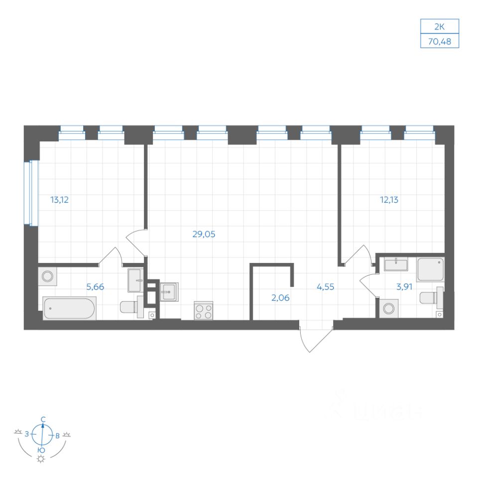 70 м² · Этаж 3 из 30