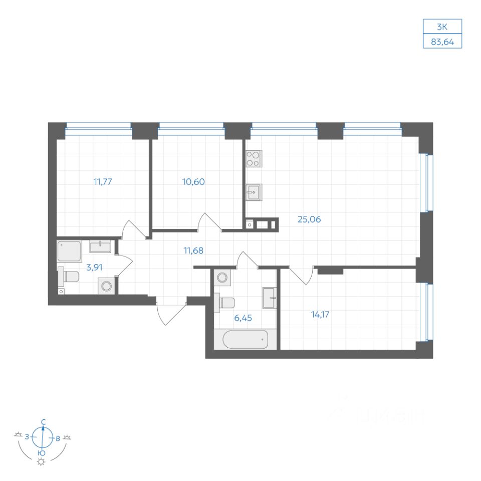 Продажа трехкомнатных квартир в Челябинске