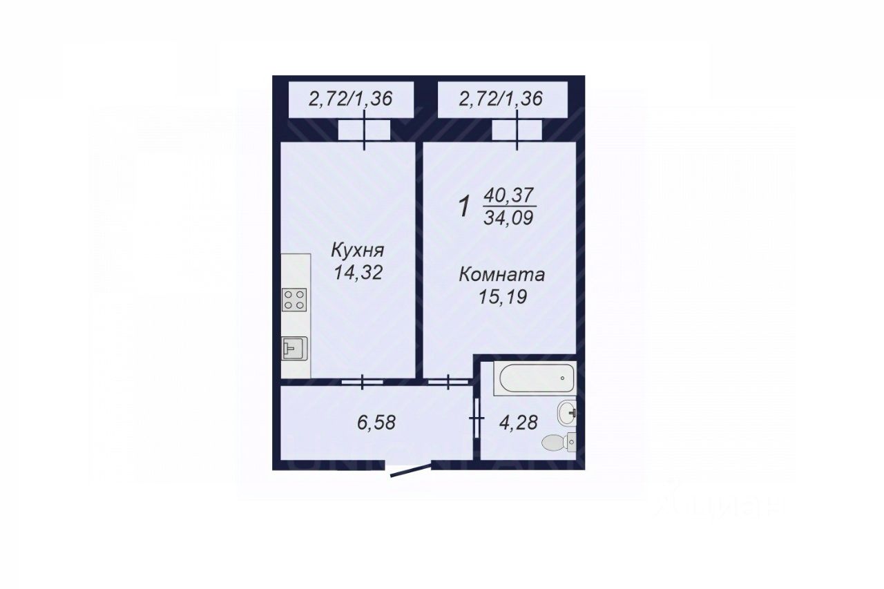 34 м² · Этаж 9 из 9