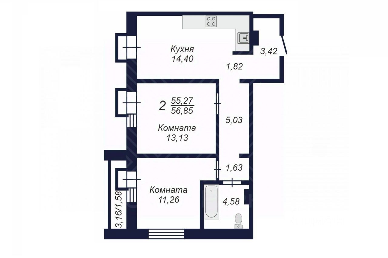 56 м² · Этаж 5 из 21