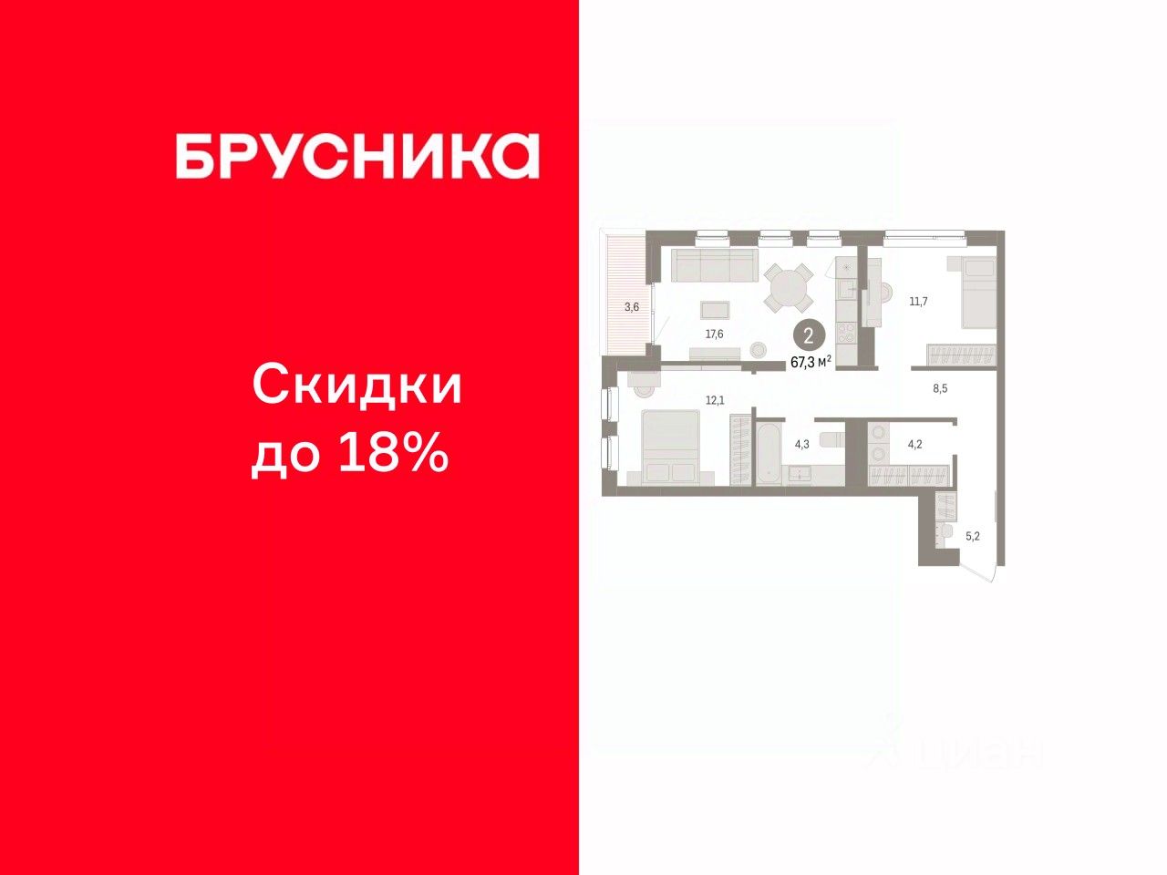 Двухкомнатная квартира от застройщика с предчистовой отделкой в ЖК ''Брусника в Эльтауне'' на 3 этаже. Общая площадь: 67.26 кв.м., жилая: 23.8 кв.м., площадь просторной кухни-гостиной: 17.6 кв.м. Квартира угловая, очень светлая, естественная вентиляция при открытии окон. В квартире одна лоджия, один совмещенный санузел. Высота потолков 2.7 м. Квартира находится в корпусе 3. Дом монолитный, одноподъездный, высотой 8 этажей. На этаже 10 квартир. В подъезде 1 пассажирский и 1 грузовой лифт. Окончание строительства - 4 квартал 2028 года. Оформление сделки по договору долевого участия. Квартира с кухней-гостиной и двумя спальнями в Брусника в Эльтауне. Особенности планировки: лоджия, постирочная, разнесённые спальни. квартиры в нашей базе: ЛТН01.1-Ж3.3.9. Квартал ''Брусника в Эльтауне'' расположился к северу-западу от Челябинска в окружении лесного массива, рядом с Лебединым прудом и Скалистым озером. Две главных слова, характеризующих Эльтаун, — концентрация и разнообразие. Его структуру формируют сразу несколько типов застройки — коттеджи, таунхаусы, квартиры в мало- и среднеэтажных домах, в перспективе нескольких лет здесь будут открыты десятки кафе, ресторанов, магазинов, аптек, медицинских и фитнес-центров. Для круглогодичного отдыха в городе построят собственный курорт. В Эльтауне будет действовать концепция непрерывного образования. Уже открыт муниципальный детский сад ''Ёлочка'' на 230 мест. В планах — инновационная школа на 1100 учеников. Кроме того, в Эльтауне организован Научно-исследовательский центр девелопмента МBA и МФТИ — одного из лучших вузов страны. Брусника стала полноправным девелопером Эльтауна. Мы построим здесь новый квартал со среднеэтажным жильём, богатым озеленением и разнообразной коммерческой и социальной инфраструктурой. Квартал Брусники расположен на въезде в город и станет его лицом. Недалеко от проекта проходит Новоградский тракт. По нему можно быстро добраться до Челябинска, озёр Увильды, Тургояк, Кисегач и Еловое, горнолыжных курортов ''Солнечная долина'', ''Евразия'' и ''Завьялиха'', парков ''Таганай'' и ''Зюраткуль''. Между Эльтауном и Челябинском курсирует автобус. Количество маршрутов и остановок общественного транспорта будет постоянно увеличиваться. До Челябинска — 5 минут на автомобиле До железнодорожного вокзала — 35 минут До аэропорта — 45 минут Проект Брусники в Эльтауне — комплексная застройка, состоящая из домов высотой не более 8 этажей. Территория Брусники разделена на несколько функциональных зон. Со стороны улицы Павленкова мы спроектировали фронт с коммерцией и приветственными площадями. На первых этажах домов — кафе, магазины, рестораны, кружки и образовательные студии. В глубине квартала расположатся общественные пространства с дождевыми садами, огородами и рощей. Ближе к лесу — пространство, которое мы назвали ''задний двор''. Здесь — игровые лужайки, плейхабы, луг для пикников и йоги, волейбольные площадки, воркаут. В этой же части, на границе квартала, предусмотрена парковка, на которой мы выса