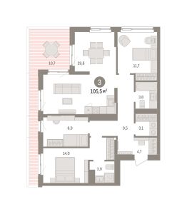 Продается трехкомнатная квартира от застройщика с предчистовой отделкой в ЖК ''Брусника в Эльтауне'' на 7 этаже. Общая площадь: 105.46 кв.м. Высота потолков 2.7 м. Квартира находится в корпусе 5. Дом монолитный, одноподъездный, высотой 7 этажей. На этаже 8 квартир. В подъезде 1 пассажирский и 1 грузовой лифт. Окончание строительства - 4 квартал 2028 года. Оформление сделки по договору долевого участия. Квартира с кухней-гостиной и тремя спальнями в Брусника в Эльтауне. Особенности планировки: вид во двор, второй санузел, мастер-спальня, постирочная, разнесённые спальни, терраса на крыше. квартиры в нашей базе: ЛТН01.1-Ж10.7.1. Квартал ''Брусника в Эльтауне'' расположился к северу-западу от Челябинска в окружении лесного массива, рядом с Лебединым прудом и Скалистым озером. Две главных слова, характеризующих Эльтаун, — концентрация и разнообразие. Его структуру формируют сразу несколько типов застройки — коттеджи, таунхаусы, квартиры в мало- и среднеэтажных домах, в перспективе нескольких лет здесь будут открыты десятки кафе, ресторанов, магазинов, аптек, медицинских и фитнес-центров. Для круглогодичного отдыха в городе построят собственный курорт.В Эльтауне будет действовать концепция непрерывного образования. Уже открыт муниципальный детский сад ''Ёлочка'' на 230 мест. В планах — инновационная школа на 1100 учеников. Кроме того, в Эльтауне организован Научно-исследовательский центр девелопмента МBA и МФТИ — одного из лучших вузов страны.Брусника стала полноправным девелопером Эльтауна. Мы построим здесь новый квартал со среднеэтажным жильём, богатым озеленением и разнообразной коммерческой и социальной инфраструктурой. Квартал Брусники расположен на въезде в город и станет его лицом. Недалеко от проекта проходит Новоградский тракт. По нему можно быстро добраться до Челябинска, озёр Увильды, Тургояк, Кисегач и Еловое, горнолыжных курортов ''Солнечная долина'', ''Евразия'' и ''Завьялиха'', парков ''Таганай'' и ''Зюраткуль''. Между Эльтауном и Челябинском курсирует автобус. Количество маршрутов и остановок общественного транспорта будет постоянно увеличиваться.До Челябинска — 5 минут на автомобилеДо железнодорожного вокзала — 35 минутДо аэропорта — 45 минут Проект Брусники в Эльтауне — комплексная застройка, состоящая из домов высотой не более 8 этажей. Территория Брусники разделена на несколько функциональных зон. Со стороны улицы Павленкова мы спроектировали фронт с коммерцией и приветственными площадями. На первых этажах домов — кафе, магазины, рестораны, кружки и образовательные студии.В глубине квартала расположатся общественные пространства с дождевыми садами, огородами и рощей.Ближе к лесу — пространство, которое мы назвали ''задний двор''. Здесь — игровые лужайки, плейхабы, луг для пикников и йоги, волейбольные площадки, воркаут. В этой же части, на границе квартала, предусмотрена парковка, на которой мы высадим взрослые деревья и кустарники. #zMdcs2