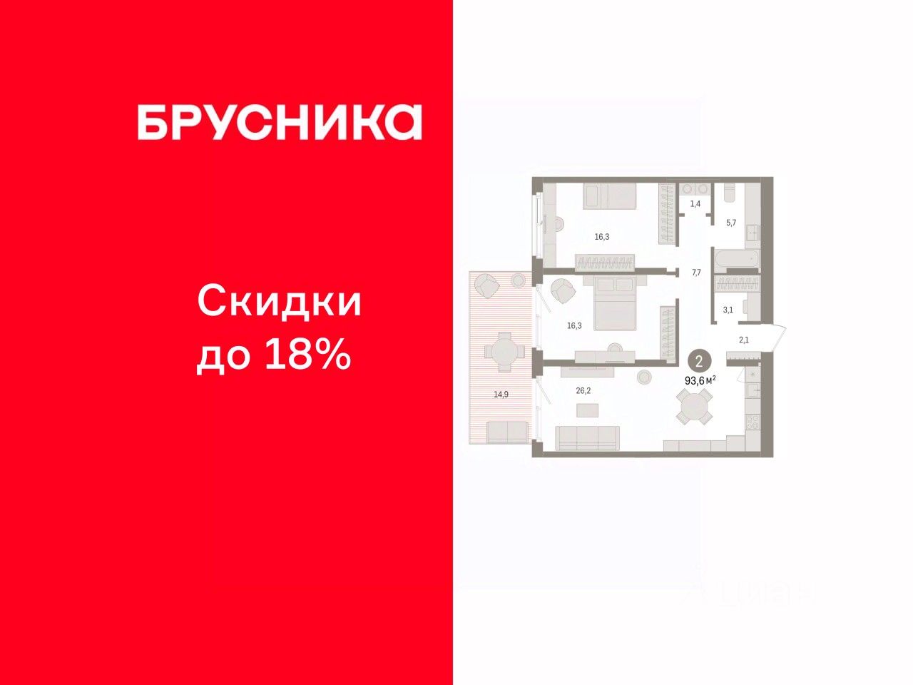 Продается двухкомнатная квартира от застройщика с предчистовой отделкой в ЖК ''Брусника в Эльтауне'' на 1 этаже. Общая площадь: 93.56 кв.м. Высота потолков 2.7 м. Квартира находится в корпусе 3. Дом монолитный, одноподъездный, высотой 8 этажей. На этаже 10 квартир. В подъезде 1 пассажирский и 1 грузовой лифт. Окончание строительства - 4 квартал 2028 года. Оформление сделки по договору долевого участия. Квартира с кухней-гостиной и двумя спальнями в Брусника в Эльтауне. Особенности планировки: гардеробная, новые лоты, окна в пол, панорамное остекление, постирочная, разнесённые спальни, терраса. квартиры в нашей базе: ЛТН01.1-Ж3.1.2. Квартал ''Брусника в Эльтауне'' расположился к северу-западу от Челябинска в окружении лесного массива, рядом с Лебединым прудом и Скалистым озером. Две главных слова, характеризующих Эльтаун, — концентрация и разнообразие. Его структуру формируют сразу несколько типов застройки — коттеджи, таунхаусы, квартиры в мало- и среднеэтажных домах, в перспективе нескольких лет здесь будут открыты десятки кафе, ресторанов, магазинов, аптек, медицинских и фитнес-центров. Для круглогодичного отдыха в городе построят собственный курорт. В Эльтауне будет действовать концепция непрерывного образования. Уже открыт муниципальный детский сад ''Ёлочка'' на 230 мест. В планах — инновационная школа на 1100 учеников. Кроме того, в Эльтауне организован Научно-исследовательский центр девелопмента МBA и МФТИ — одного из лучших вузов страны. Брусника стала полноправным девелопером Эльтауна. Мы построим здесь новый квартал со среднеэтажным жильём, богатым озеленением и разнообразной коммерческой и социальной инфраструктурой. Квартал Брусники расположен на въезде в город и станет его лицом. Недалеко от проекта проходит Новоградский тракт. По нему можно быстро добраться до Челябинска, озёр Увильды, Тургояк, Кисегач и Еловое, горнолыжных курортов ''Солнечная долина'', ''Евразия'' и ''Завьялиха'', парков ''Таганай'' и ''Зюраткуль''. Между Эльтауном и Челябинском курсирует автобус. Количество маршрутов и остановок общественного транспорта будет постоянно увеличиваться. До Челябинска — 5 минут на автомобиле До железнодорожного вокзала — 35 минут До аэропорта — 45 минут Проект Брусники в Эльтауне — комплексная застройка, состоящая из домов высотой не более 8 этажей. Территория Брусники разделена на несколько функциональных зон. Со стороны улицы Павленкова мы спроектировали фронт с коммерцией и приветственными площадями. На первых этажах домов — кафе, магазины, рестораны, кружки и образовательные студии. В глубине квартала расположатся общественные пространства с дождевыми садами, огородами и рощей. Ближе к лесу — пространство, которое мы назвали ''задний двор''. Здесь — игровые лужайки, плейхабы, луг для пикников и йоги, волейбольные площадки, воркаут. В этой же части, на границе квартала, предусмотрена парковка, на которой мы высадим взрослые деревья и кустарники. #2MdCu7