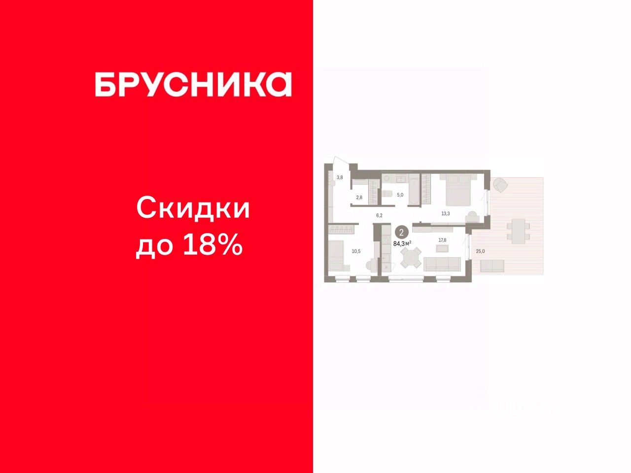 2-комн. квартира с предчистовой отделкой в ЖК ''Брусника в Эльтауне'' на 1 этаже. Общая площадь: 84.82 кв.м. Высота потолков 2.7 м. Квартира находится в корпусе 2. Дом монолитный, одноподъездный, высотой 8 этажей. На этаже 10 квартир. В подъезде 1 пассажирский и 1 грузовой лифт. Окончание строительства - 4 квартал 2028 года. Оформление сделки по договору долевого участия. Квартира с кухней-гостиной и двумя спальнями в Брусника в Эльтауне. Особенности планировки: новые лоты, окна в пол, панорамное остекление, разнесённые спальни, терраса. квартиры в нашей базе: ЛТН01.1-Ж2.1.2. Квартал ''Брусника в Эльтауне'' расположился к северу-западу от Челябинска в окружении лесного массива, рядом с Лебединым прудом и Скалистым озером. Две главных слова, характеризующих Эльтаун, — концентрация и разнообразие. Его структуру формируют сразу несколько типов застройки — коттеджи, таунхаусы, квартиры в мало- и среднеэтажных домах, в перспективе нескольких лет здесь будут открыты десятки кафе, ресторанов, магазинов, аптек, медицинских и фитнес-центров. Для круглогодичного отдыха в городе построят собственный курорт. В Эльтауне будет действовать концепция непрерывного образования. Уже открыт муниципальный детский сад ''Ёлочка'' на 230 мест. В планах — инновационная школа на 1100 учеников. Кроме того, в Эльтауне организован Научно-исследовательский центр девелопмента МBA и МФТИ — одного из лучших вузов страны. Брусника стала полноправным девелопером Эльтауна. Мы построим здесь новый квартал со среднеэтажным жильём, богатым озеленением и разнообразной коммерческой и социальной инфраструктурой. Квартал Брусники расположен на въезде в город и станет его лицом. Недалеко от проекта проходит Новоградский тракт. По нему можно быстро добраться до Челябинска, озёр Увильды, Тургояк, Кисегач и Еловое, горнолыжных курортов ''Солнечная долина'', ''Евразия'' и ''Завьялиха'', парков ''Таганай'' и ''Зюраткуль''. Между Эльтауном и Челябинском курсирует автобус. Количество маршрутов и остановок общественного транспорта будет постоянно увеличиваться. До Челябинска — 5 минут на автомобиле До железнодорожного вокзала — 35 минут До аэропорта — 45 минут Проект Брусники в Эльтауне — комплексная застройка, состоящая из домов высотой не более 8 этажей. Территория Брусники разделена на несколько функциональных зон. Со стороны улицы Павленкова мы спроектировали фронт с коммерцией и приветственными площадями. На первых этажах домов — кафе, магазины, рестораны, кружки и образовательные студии. В глубине квартала расположатся общественные пространства с дождевыми садами, огородами и рощей. Ближе к лесу — пространство, которое мы назвали ''задний двор''. Здесь — игровые лужайки, плейхабы, луг для пикников и йоги, волейбольные площадки, воркаут. В этой же части, на границе квартала, предусмотрена парковка, на которой мы высадим взрослые деревья и кустарники. #26DCsd