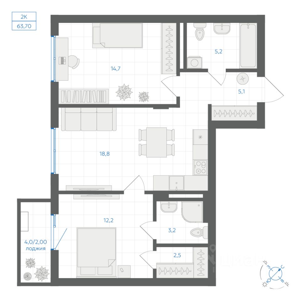 57 м² · Этаж 5 из 18