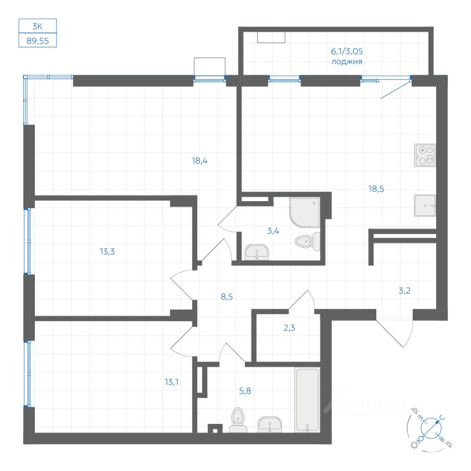 Трехкомнатные
