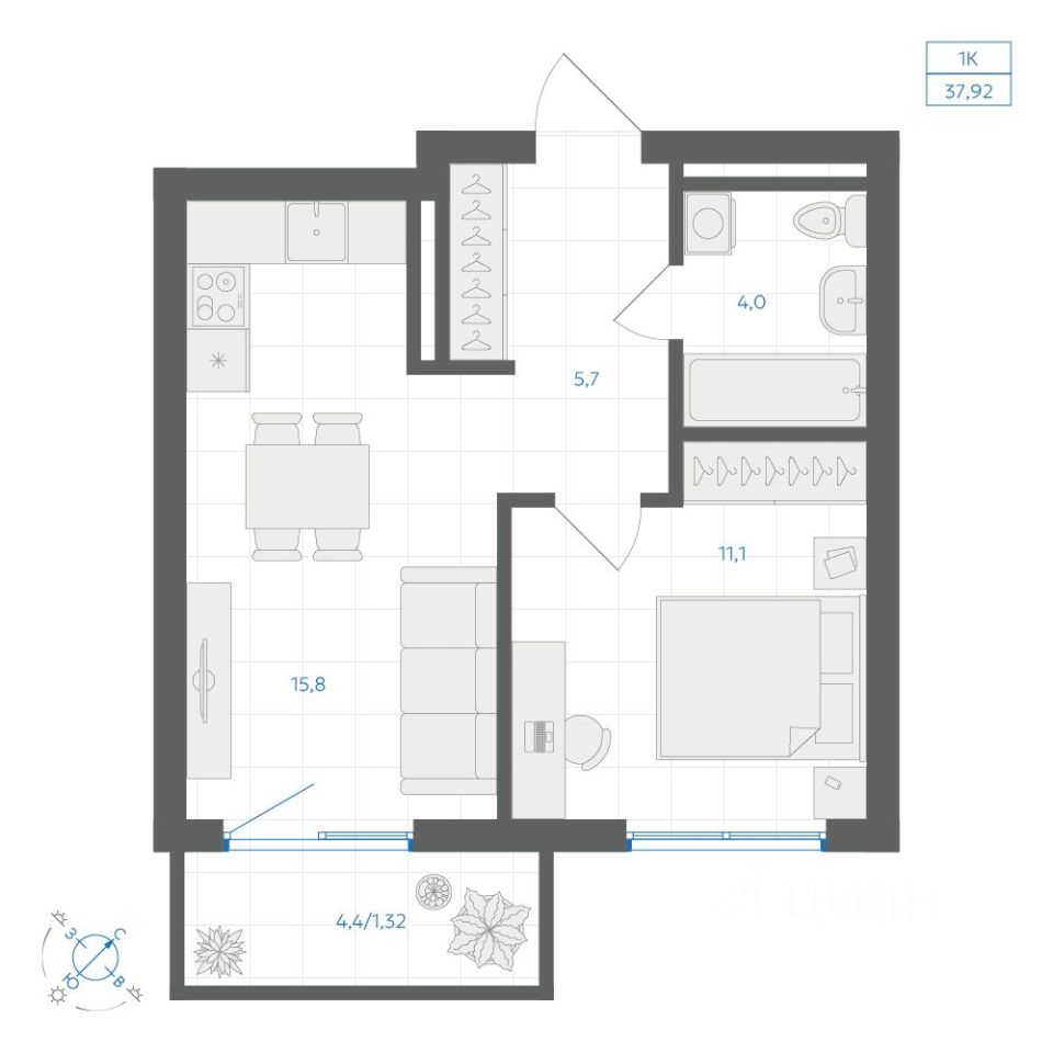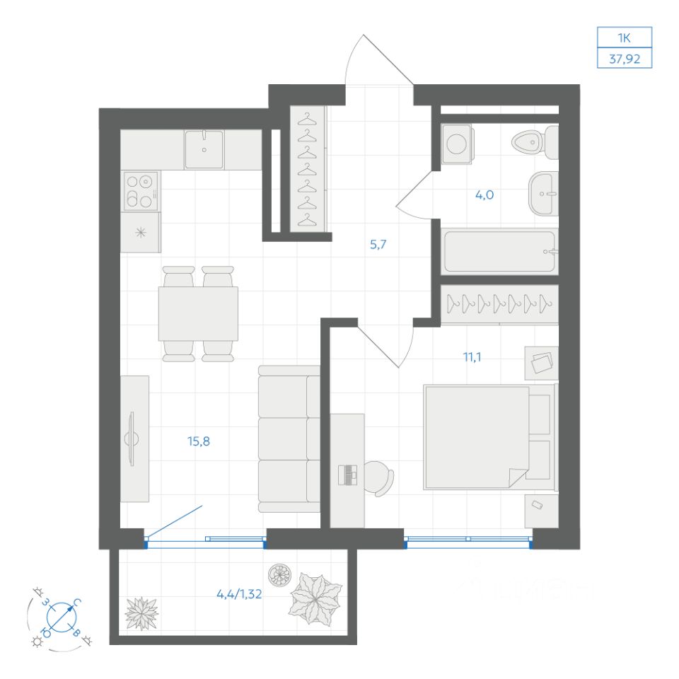 38 м² · Этаж 15 из 18