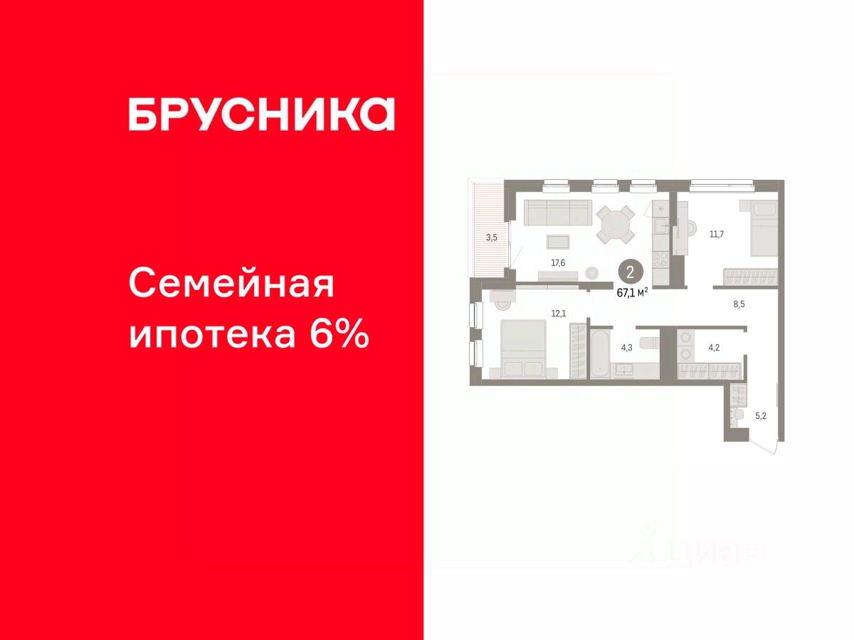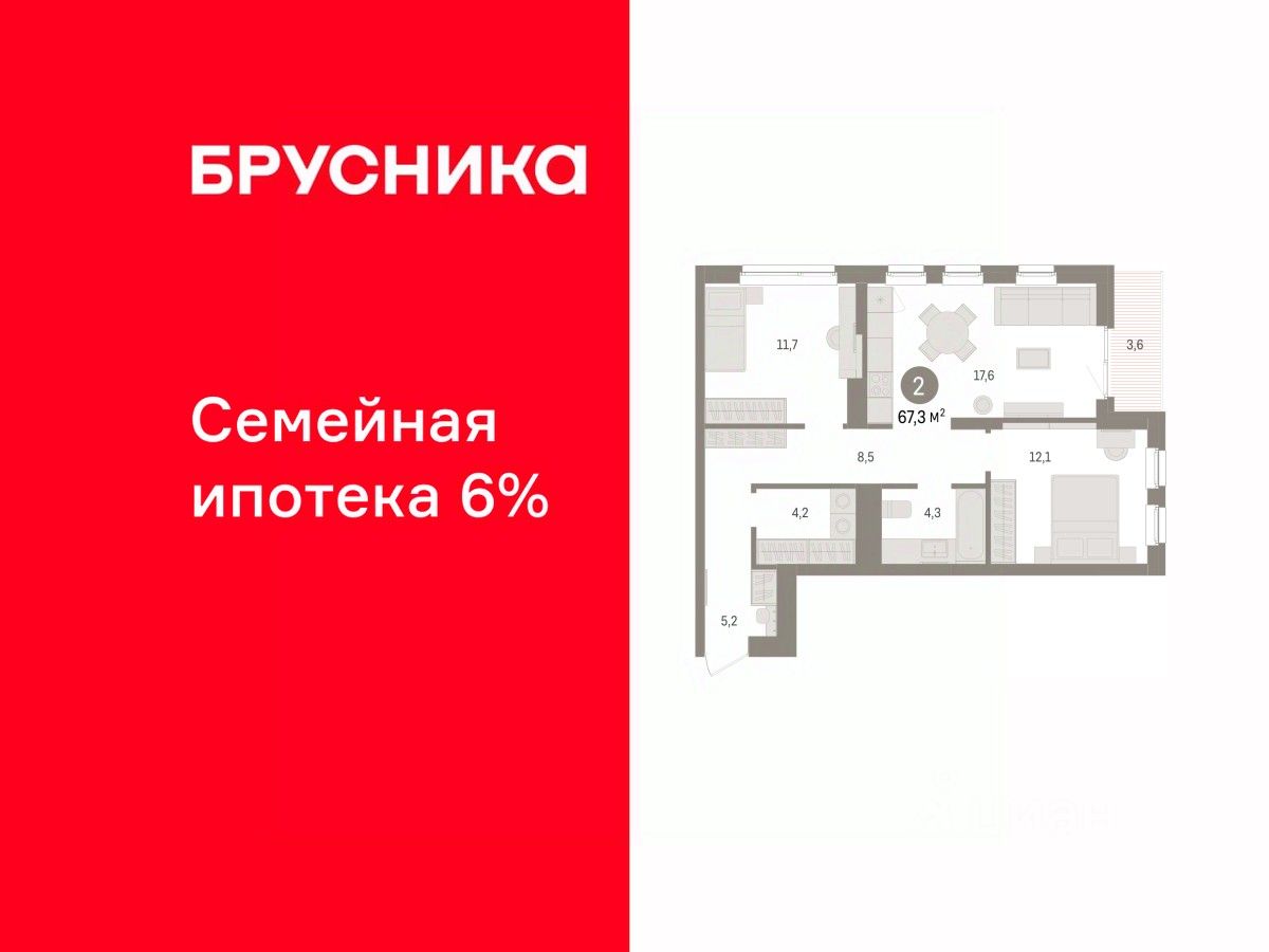 2-комн. квартира с предчистовой отделкой в ЖК ''Брусника в Эльтауне'' на 6 этаже. Общая площадь: 67.19 кв.м., жилая: 23.8 кв.м., площадь просторной кухни-гостиной: 17.6 кв.м. Квартира угловая, окна oбecпeчивaют paвнoмepнoe ocвeщeниe в тeчeниe дня. В квартире одна лоджия, один совмещенный санузел. Высота потолков 2.7 м. Квартира находится в корпусе 4. Дом монолитный, одноподъездный, высотой 8 этажей. На этаже 7 квартир. В подъезде 1 пассажирский и 1 грузовой лифт. Окончание строительства - 4 квартал 2028 года. Оформление сделки по договору долевого участия. Квартира с кухней-гостиной и двумя спальнями в Брусника в Эльтауне. Особенности планировки: лоджия, постирочная, разнесённые спальни. квартиры в нашей базе: ЛТН01.1-Ж4.6.9. Квартал ''Брусника в Эльтауне'' расположился к северу-западу от Челябинска в окружении лесного массива, рядом с Лебединым прудом и Скалистым озером. Две главных слова, характеризующих Эльтаун, — концентрация и разнообразие. Его структуру формируют сразу несколько типов застройки — коттеджи, таунхаусы, квартиры в мало- и среднеэтажных домах, в перспективе нескольких лет здесь будут открыты десятки кафе, ресторанов, магазинов, аптек, медицинских и фитнес-центров. Для круглогодичного отдыха в городе построят собственный курорт. В Эльтауне будет действовать концепция непрерывного образования. Уже открыт муниципальный детский сад ''Ёлочка'' на 230 мест. В планах — инновационная школа на 1100 учеников. Кроме того, в Эльтауне организован Научно-исследовательский центр девелопмента МBA и МФТИ — одного из лучших вузов страны. Брусника стала полноправным девелопером Эльтауна. Мы построим здесь новый квартал со среднеэтажным жильём, богатым озеленением и разнообразной коммерческой и социальной инфраструктурой. Квартал Брусники расположен на въезде в город и станет его лицом. Недалеко от проекта проходит Новоградский тракт. По нему можно быстро добраться до Челябинска, озёр Увильды, Тургояк, Кисегач и Еловое, горнолыжных курортов ''Солнечная долина'', ''Евразия'' и ''Завьялиха'', парков ''Таганай'' и ''Зюраткуль''. Между Эльтауном и Челябинском курсирует автобус. Количество маршрутов и остановок общественного транспорта будет постоянно увеличиваться. До Челябинска — 5 минут на автомобиле До железнодорожного вокзала — 35 минут До аэропорта — 45 минут Проект Брусники в Эльтауне — комплексная застройка, состоящая из домов высотой не более 8 этажей. Территория Брусники разделена на несколько функциональных зон. Со стороны улицы Павленкова мы спроектировали фронт с коммерцией и приветственными площадями. На первых этажах домов — кафе, магазины, рестораны, кружки и образовательные студии. В глубине квартала расположатся общественные пространства с дождевыми садами, огородами и рощей. Ближе к лесу — пространство, которое мы назвали ''задний двор''. Здесь — игровые лужайки, плейхабы, луг для пикников и йоги, волейбольные площадки, воркаут. В этой же части, на границе квартала, предусмотрена парковка, на которой мы высадим взрослые деревья и ку