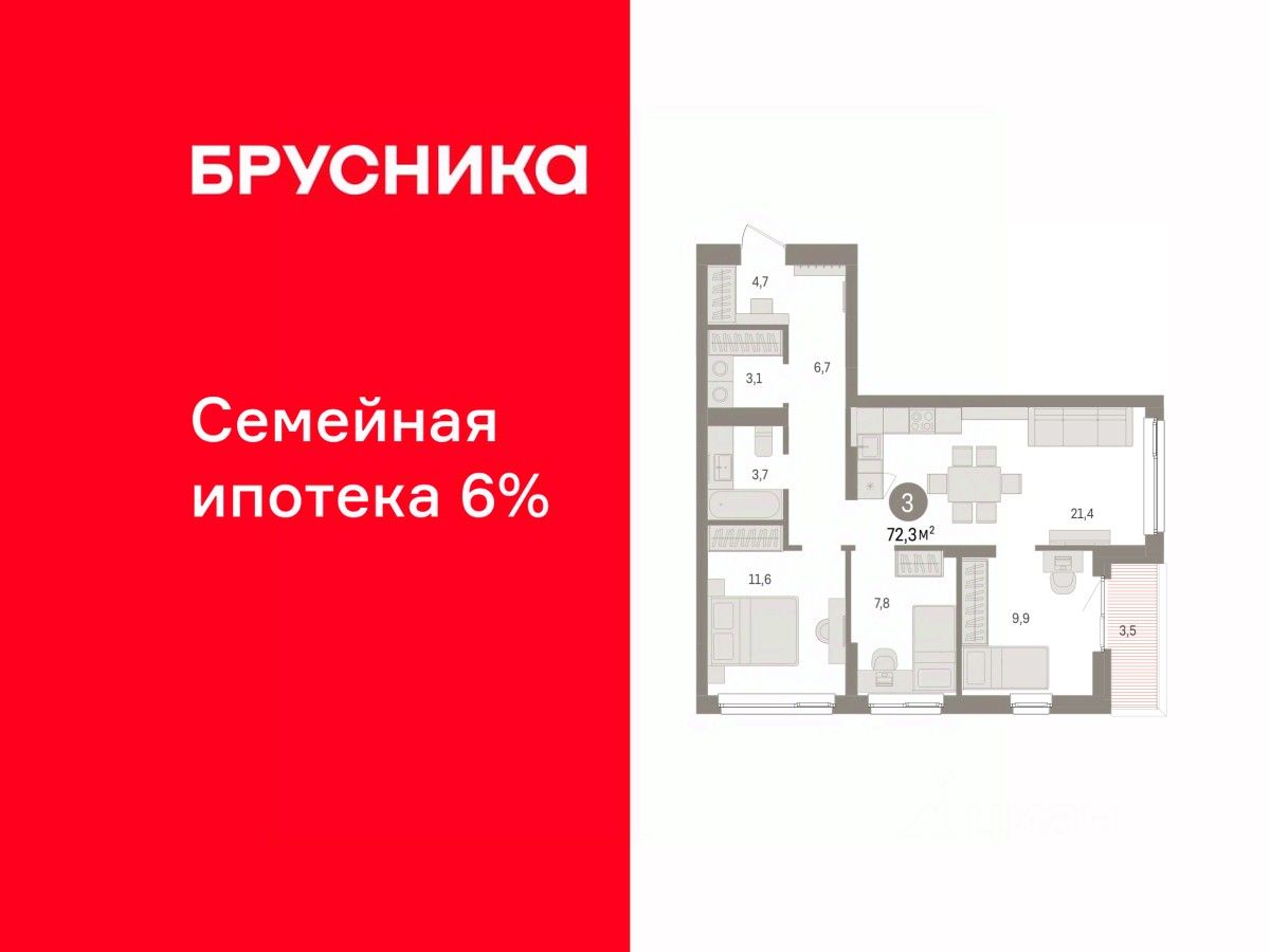 Продается 3-комн. квартира от застройщика с предчистовой отделкой в ЖК ''Брусника в Эльтауне'' на 3 этаже. Общая площадь: 72.29 кв.м. Высота потолков 2.7 м. Квартира находится в корпусе 5. Дом монолитный, одноподъездный, высотой 7 этажей. На этаже 8 квартир. В подъезде 1 пассажирский и 1 грузовой лифт. Окончание строительства - 4 квартал 2028 года. Оформление сделки по договору долевого участия. Квартира с кухней-гостиной и тремя спальнями в Брусника в Эльтауне. Особенности планировки: вид во двор, лоджия, постирочная, разнесённые спальни. квартиры в нашей базе: ЛТН01.1-Ж10.3.2. Квартал ''Брусника в Эльтауне'' расположился к северу-западу от Челябинска в окружении лесного массива, рядом с Лебединым прудом и Скалистым озером. Две главных слова, характеризующих Эльтаун, — концентрация и разнообразие. Его структуру формируют сразу несколько типов застройки — коттеджи, таунхаусы, квартиры в мало- и среднеэтажных домах, в перспективе нескольких лет здесь будут открыты десятки кафе, ресторанов, магазинов, аптек, медицинских и фитнес-центров. Для круглогодичного отдыха в городе построят собственный курорт. В Эльтауне будет действовать концепция непрерывного образования. Уже открыт муниципальный детский сад ''Ёлочка'' на 230 мест. В планах — инновационная школа на 1100 учеников. Кроме того, в Эльтауне организован Научно-исследовательский центр девелопмента МBA и МФТИ — одного из лучших вузов страны. Брусника стала полноправным девелопером Эльтауна. Мы построим здесь новый квартал со среднеэтажным жильём, богатым озеленением и разнообразной коммерческой и социальной инфраструктурой. Квартал Брусники расположен на въезде в город и станет его лицом. Недалеко от проекта проходит Новоградский тракт. По нему можно быстро добраться до Челябинска, озёр Увильды, Тургояк, Кисегач и Еловое, горнолыжных курортов ''Солнечная долина'', ''Евразия'' и ''Завьялиха'', парков ''Таганай'' и ''Зюраткуль''. Между Эльтауном и Челябинском курсирует автобус. Количество маршрутов и остановок общественного транспорта будет постоянно увеличиваться. До Челябинска — 5 минут на автомобиле До железнодорожного вокзала — 35 минут До аэропорта — 45 минут Проект Брусники в Эльтауне — комплексная застройка, состоящая из домов высотой не более 8 этажей. Территория Брусники разделена на несколько функциональных зон. Со стороны улицы Павленкова мы спроектировали фронт с коммерцией и приветственными площадями. На первых этажах домов — кафе, магазины, рестораны, кружки и образовательные студии. В глубине квартала расположатся общественные пространства с дождевыми садами, огородами и рощей. Ближе к лесу — пространство, которое мы назвали ''задний двор''. Здесь — игровые лужайки, плейхабы, луг для пикников и йоги, волейбольные площадки, воркаут. В этой же части, на границе квартала, предусмотрена парковка, на которой мы высадим взрослые деревья и кустарники. #2mcFef