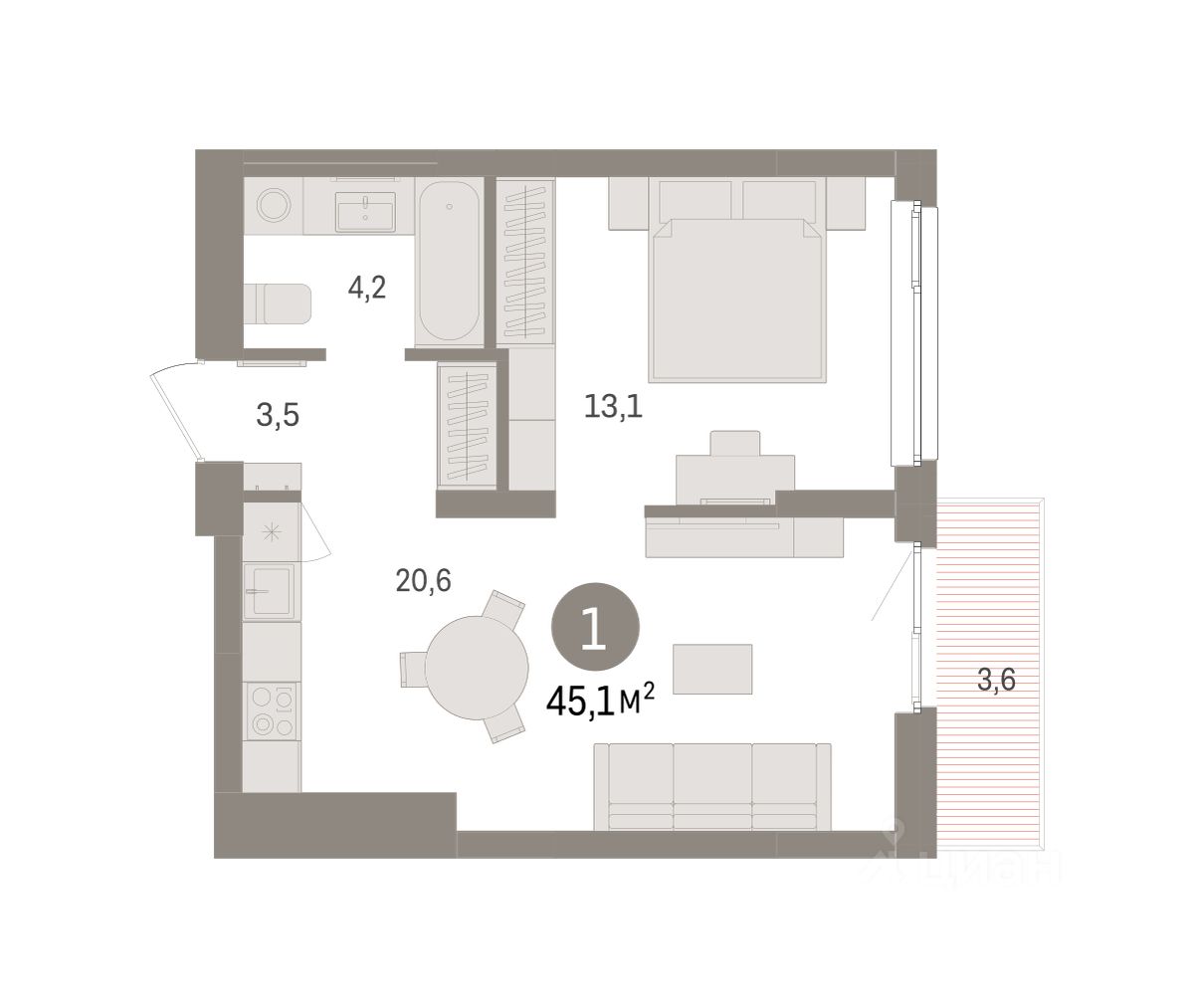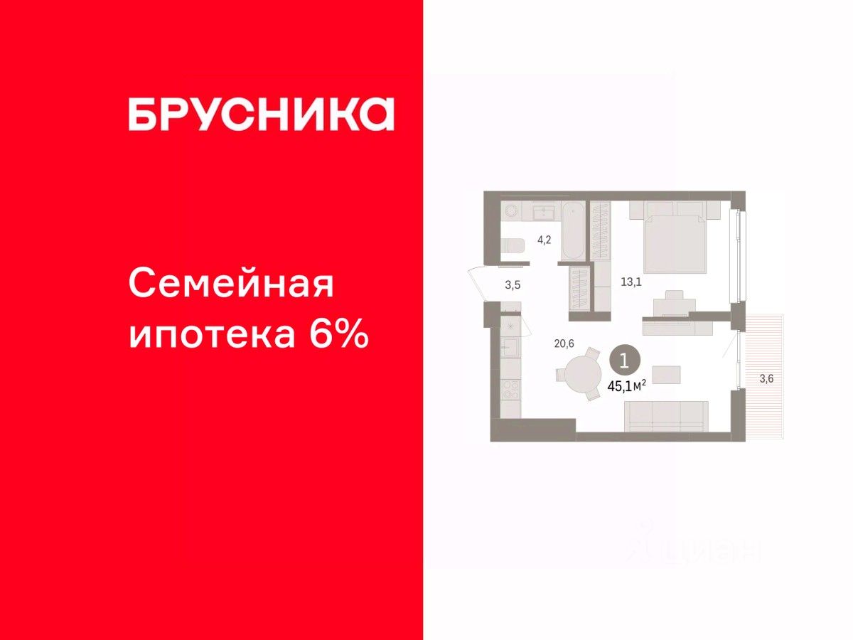 1-комн. квартира с предчистовой отделкой в ЖК ''Брусника в Эльтауне'' на 4 этаже. Общая площадь: 45.12 кв.м. Высота потолков 2.7 м. Квартира находится в корпусе 5. Дом монолитный, одноподъездный, высотой 7 этажей. На этаже 8 квартир. В подъезде 1 пассажирский и 1 грузовой лифт. Окончание строительства - 4 квартал 2028 года. Оформление сделки по договору долевого участия. Квартира с кухней-гостиной и одной спальней в Брусника в Эльтауне. Особенности планировки: балкон, вид во двор. квартиры в нашей базе: ЛТН01.1-Ж10.4.5. Квартал ''Брусника в Эльтауне'' расположился к северу-западу от Челябинска в окружении лесного массива, рядом с Лебединым прудом и Скалистым озером. Две главных слова, характеризующих Эльтаун, — концентрация и разнообразие. Его структуру формируют сразу несколько типов застройки — коттеджи, таунхаусы, квартиры в мало- и среднеэтажных домах, в перспективе нескольких лет здесь будут открыты десятки кафе, ресторанов, магазинов, аптек, медицинских и фитнес-центров. Для круглогодичного отдыха в городе построят собственный курорт. В Эльтауне будет действовать концепция непрерывного образования. Уже открыт муниципальный детский сад ''Ёлочка'' на 230 мест. В планах — инновационная школа на 1100 учеников. Кроме того, в Эльтауне организован Научно-исследовательский центр девелопмента МBA и МФТИ — одного из лучших вузов страны. Брусника стала полноправным девелопером Эльтауна. Мы построим здесь новый квартал со среднеэтажным жильём, богатым озеленением и разнообразной коммерческой и социальной инфраструктурой. Квартал Брусники расположен на въезде в город и станет его лицом. Недалеко от проекта проходит Новоградский тракт. По нему можно быстро добраться до Челябинска, озёр Увильды, Тургояк, Кисегач и Еловое, горнолыжных курортов ''Солнечная долина'', ''Евразия'' и ''Завьялиха'', парков ''Таганай'' и ''Зюраткуль''. Между Эльтауном и Челябинском курсирует автобус. Количество маршрутов и остановок общественного транспорта будет постоянно увеличиваться. До Челябинска — 5 минут на автомобиле До железнодорожного вокзала — 35 минут До аэропорта — 45 минут Проект Брусники в Эльтауне — комплексная застройка, состоящая из домов высотой не более 8 этажей. Территория Брусники разделена на несколько функциональных зон. Со стороны улицы Павленкова мы спроектировали фронт с коммерцией и приветственными площадями. На первых этажах домов — кафе, магазины, рестораны, кружки и образовательные студии. В глубине квартала расположатся общественные пространства с дождевыми садами, огородами и рощей. Ближе к лесу — пространство, которое мы назвали ''задний двор''. Здесь — игровые лужайки, плейхабы, луг для пикников и йоги, волейбольные площадки, воркаут. В этой же части, на границе квартала, предусмотрена парковка, на которой мы высадим взрослые деревья и кустарники. #Z6DCOz