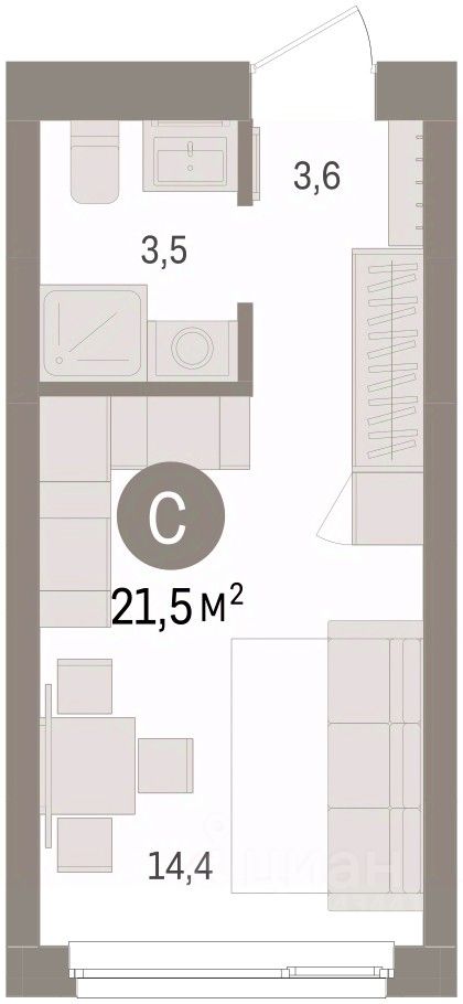 21 м² · Этаж 2 из 8