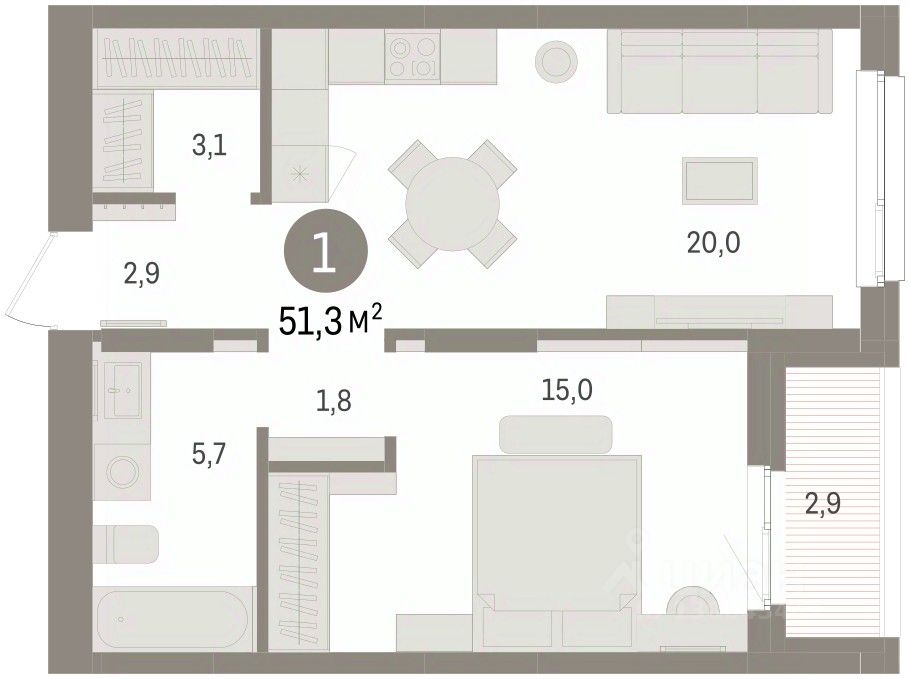 51 м² · Этаж 7 из 8