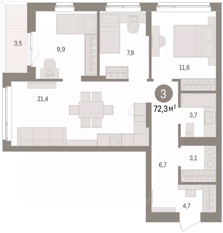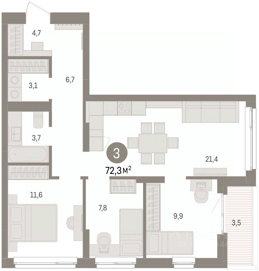 72 м² · Этаж 3 из 7
