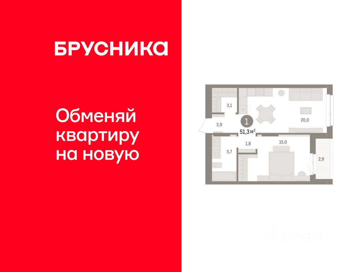 Продается однокомнатная квартира с предчистовой отделкой в ЖК ''Брусника в Эльтауне'' на 7 этаже. Общая площадь: 51.28 кв.м. Высота потолков 2.7 м. Квартира находится в корпусе 3. Дом монолитный, одноподъездный, высотой 8 этажей. На этаже 10 квартир. В подъезде 1 пассажирский и 1 грузовой лифт. Окончание строительства - 4 квартал 2028 года. Оформление сделки по договору долевого участия. Квартира с кухней-гостиной и одной спальней в Брусника в Эльтауне. Особенности планировки: терраса на крыше. квартиры в нашей базе: ЛТН01.1-Ж3.7.5. Квартал ''Брусника в Эльтауне'' расположился к северу-западу от Челябинска в окружении лесного массива, рядом с Лебединым прудом и Скалистым озером. Две главных слова, характеризующих Эльтаун, — концентрация и разнообразие. Его структуру формируют сразу несколько типов застройки — коттеджи, таунхаусы, квартиры в мало- и среднеэтажных домах, в перспективе нескольких лет здесь будут открыты десятки кафе, ресторанов, магазинов, аптек, медицинских и фитнес-центров. Для круглогодичного отдыха в городе построят собственный курорт. В Эльтауне будет действовать концепция непрерывного образования. Уже открыт муниципальный детский сад ''Ёлочка'' на 230 мест. В планах — инновационная школа на 1100 учеников. Кроме того, в Эльтауне организован Научно-исследовательский центр девелопмента МBA и МФТИ — одного из лучших вузов страны. Брусника стала полноправным девелопером Эльтауна. Мы построим здесь новый квартал со среднеэтажным жильём, богатым озеленением и разнообразной коммерческой и социальной инфраструктурой. Квартал Брусники расположен на въезде в город и станет его лицом. Недалеко от проекта проходит Новоградский тракт. По нему можно быстро добраться до Челябинска, озёр Увильды, Тургояк, Кисегач и Еловое, горнолыжных курортов ''Солнечная долина'', ''Евразия'' и ''Завьялиха'', парков ''Таганай'' и ''Зюраткуль''. Между Эльтауном и Челябинском курсирует автобус. Количество маршрутов и остановок общественного транспорта будет постоянно увеличиваться. До Челябинска — 5 минут на автомобиле До железнодорожного вокзала — 35 минут До аэропорта — 45 минут Проект Брусники в Эльтауне — комплексная застройка, состоящая из домов высотой не более 8 этажей. Территория Брусники разделена на несколько функциональных зон. Со стороны улицы Павленкова мы спроектировали фронт с коммерцией и приветственными площадями. На первых этажах домов — кафе, магазины, рестораны, кружки и образовательные студии. В глубине квартала расположатся общественные пространства с дождевыми садами, огородами и рощей. Ближе к лесу — пространство, которое мы назвали ''задний двор''. Здесь — игровые лужайки, плейхабы, луг для пикников и йоги, волейбольные площадки, воркаут. В этой же части, на границе квартала, предусмотрена парковка, на которой мы высадим взрослые деревья и кустарники. #zMcFdb