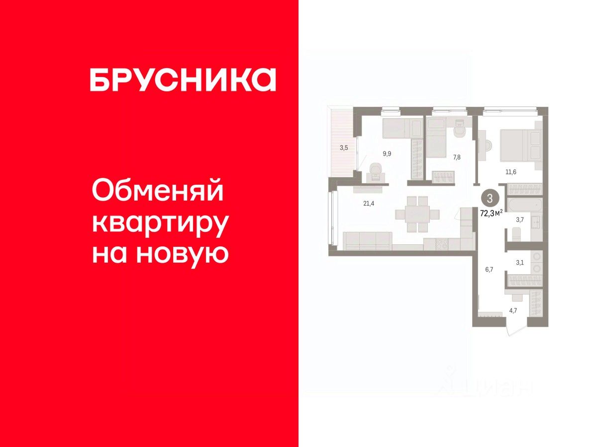 Трехкомнатная квартира от застройщика с предчистовой отделкой в ЖК ''Брусника в Эльтауне'' на 3 этаже. Общая площадь: 72.29 кв.м. Высота потолков 2.7 м. Квартира находится в корпусе 5. Дом монолитный, одноподъездный, высотой 7 этажей. На этаже 8 квартир. В подъезде 1 пассажирский и 1 грузовой лифт. Окончание строительства - 4 квартал 2028 года. Оформление сделки по договору долевого участия. Квартира с кухней-гостиной и тремя спальнями в Брусника в Эльтауне. Особенности планировки: разнесённые спальни. квартиры в нашей базе: ЛТН01.1-Ж10.3.2. Квартал ''Брусника в Эльтауне'' расположился к северу-западу от Челябинска в окружении лесного массива, рядом с Лебединым прудом и Скалистым озером. Две главных слова, характеризующих Эльтаун, — концентрация и разнообразие. Его структуру формируют сразу несколько типов застройки — коттеджи, таунхаусы, квартиры в мало- и среднеэтажных домах, в перспективе нескольких лет здесь будут открыты десятки кафе, ресторанов, магазинов, аптек, медицинских и фитнес-центров. Для круглогодичного отдыха в городе построят собственный курорт. В Эльтауне будет действовать концепция непрерывного образования. Уже открыт муниципальный детский сад ''Ёлочка'' на 230 мест. В планах — инновационная школа на 1100 учеников. Кроме того, в Эльтауне организован Научно-исследовательский центр девелопмента МBA и МФТИ — одного из лучших вузов страны. Брусника стала полноправным девелопером Эльтауна. Мы построим здесь новый квартал со среднеэтажным жильём, богатым озеленением и разнообразной коммерческой и социальной инфраструктурой. Квартал Брусники расположен на въезде в город и станет его лицом. Недалеко от проекта проходит Новоградский тракт. По нему можно быстро добраться до Челябинска, озёр Увильды, Тургояк, Кисегач и Еловое, горнолыжных курортов ''Солнечная долина'', ''Евразия'' и ''Завьялиха'', парков ''Таганай'' и ''Зюраткуль''. Между Эльтауном и Челябинском курсирует автобус. Количество маршрутов и остановок общественного транспорта будет постоянно увеличиваться. До Челябинска — 5 минут на автомобиле До железнодорожного вокзала — 35 минут До аэропорта — 45 минут Проект Брусники в Эльтауне — комплексная застройка, состоящая из домов высотой не более 8 этажей. Территория Брусники разделена на несколько функциональных зон. Со стороны улицы Павленкова мы спроектировали фронт с коммерцией и приветственными площадями. На первых этажах домов — кафе, магазины, рестораны, кружки и образовательные студии. В глубине квартала расположатся общественные пространства с дождевыми садами, огородами и рощей. Ближе к лесу — пространство, которое мы назвали ''задний двор''. Здесь — игровые лужайки, плейхабы, луг для пикников и йоги, волейбольные площадки, воркаут. В этой же части, на границе квартала, предусмотрена парковка, на которой мы высадим взрослые деревья и кустарники. #zmCFEF
