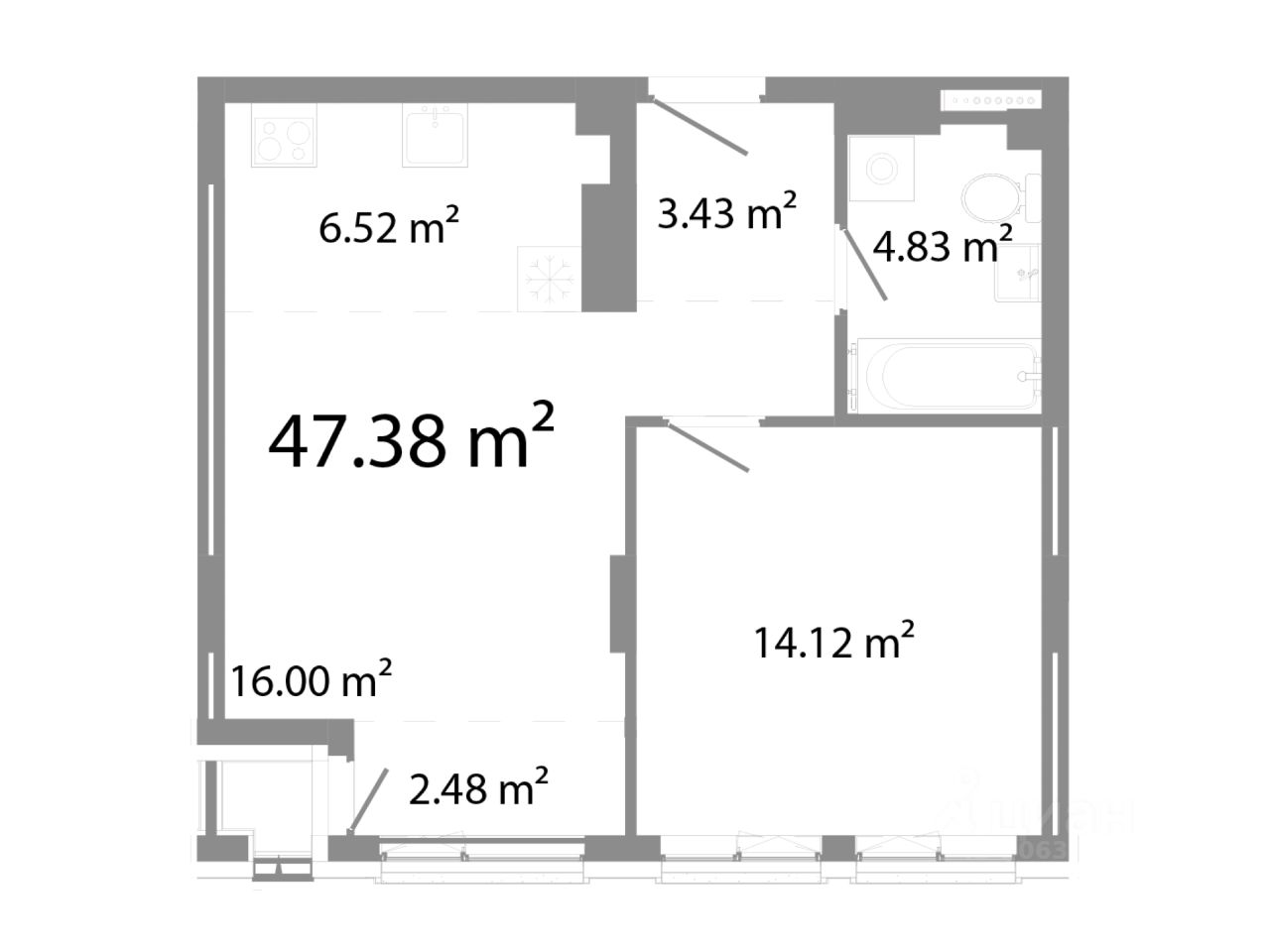 47 м² · Этаж 16 из 23