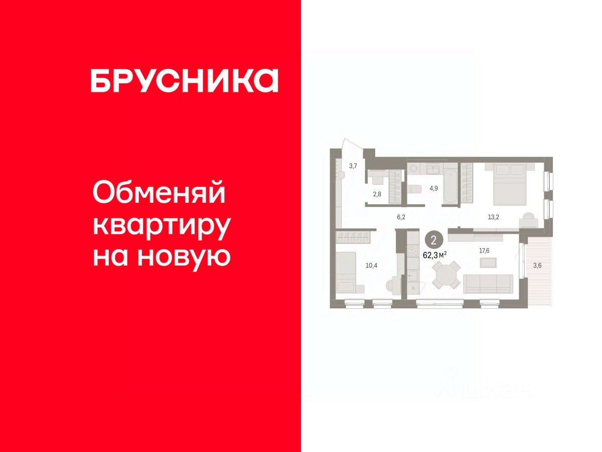 Двухкомнатная квартира с предчистовой отделкой в ЖК ''Брусника в Эльтауне'' на 4 этаже. Общая площадь: 62.31 кв.м., жилая: 23.6 кв.м., площадь просторной кухни-гостиной: 17.6 кв.м. Угловая квартира, идеально подойдет любителям тишины и панорамных видов. В квартире одна лоджия, один совмещенный санузел. Высота потолков 2.7 м. Квартира находится в корпусе 4. Дом монолитный, одноподъездный, высотой 8 этажей. На этаже 7 квартир. В подъезде 1 пассажирский и 1 грузовой лифт. Окончание строительства - 4 квартал 2028 года. Оформление сделки по договору долевого участия. Квартира с кухней-гостиной и двумя спальнями в Брусника в Эльтауне. Особенности планировки: гардеробная, лоджия, разнесённые спальни. квартиры в нашей базе: ЛТН01.1-Ж4.4.6. Квартал ''Брусника в Эльтауне'' расположился к северу-западу от Челябинска в окружении лесного массива, рядом с Лебединым прудом и Скалистым озером. Две главных слова, характеризующих Эльтаун, — концентрация и разнообразие. Его структуру формируют сразу несколько типов застройки — коттеджи, таунхаусы, квартиры в мало- и среднеэтажных домах, в перспективе нескольких лет здесь будут открыты десятки кафе, ресторанов, магазинов, аптек, медицинских и фитнес-центров. Для круглогодичного отдыха в городе построят собственный курорт. В Эльтауне будет действовать концепция непрерывного образования. Уже открыт муниципальный детский сад ''Ёлочка'' на 230 мест. В планах — инновационная школа на 1100 учеников. Кроме того, в Эльтауне организован Научно-исследовательский центр девелопмента МBA и МФТИ — одного из лучших вузов страны. Брусника стала полноправным девелопером Эльтауна. Мы построим здесь новый квартал со среднеэтажным жильём, богатым озеленением и разнообразной коммерческой и социальной инфраструктурой. Квартал Брусники расположен на въезде в город и станет его лицом. Недалеко от проекта проходит Новоградский тракт. По нему можно быстро добраться до Челябинска, озёр Увильды, Тургояк, Кисегач и Еловое, горнолыжных курортов ''Солнечная долина'', ''Евразия'' и ''Завьялиха'', парков ''Таганай'' и ''Зюраткуль''. Между Эльтауном и Челябинском курсирует автобус. Количество маршрутов и остановок общественного транспорта будет постоянно увеличиваться. До Челябинска — 5 минут на автомобиле До железнодорожного вокзала — 35 минут До аэропорта — 45 минут Проект Брусники в Эльтауне — комплексная застройка, состоящая из домов высотой не более 8 этажей. Территория Брусники разделена на несколько функциональных зон. Со стороны улицы Павленкова мы спроектировали фронт с коммерцией и приветственными площадями. На первых этажах домов — кафе, магазины, рестораны, кружки и образовательные студии. В глубине квартала расположатся общественные пространства с дождевыми садами, огородами и рощей. Ближе к лесу — пространство, которое мы назвали ''задний двор''. Здесь — игровые лужайки, плейхабы, луг для пикников и йоги, волейбольные площадки, воркаут. В этой же части, на границе квартала, предусмотрена парковка, на которой мы высадим взрослые деревь