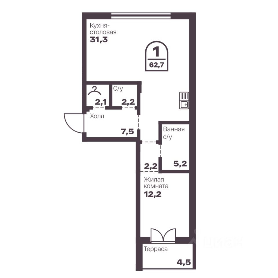 45 м² · Этаж 4 из 7
