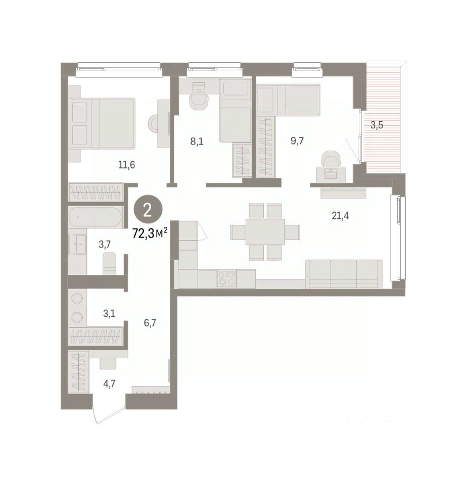 72 м² · Этаж 4 из 7