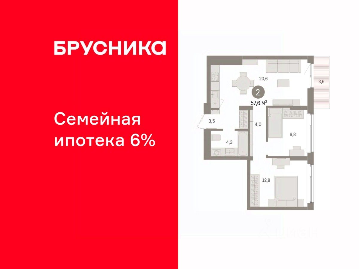 Спешите оформить бронирование по этой цене, период акции ограничен! Стоимость квартиры указана со скидкой, ваша экономия составит 1,290,000 руб. По всем вопросам звоните в офис продаж, наши менеджеры вам все расскажут. Двухкомнатная квартира от застройщика с предчистовой отделкой в ЖК ''Брусника в Эльтауне'' на 6 этаже. Общая площадь: 57.62 кв.м. Высота потолков 2.7 м. Квартира находится в корпусе 5. Дом монолитный, одноподъездный, высотой 7 этажей. На этаже 8 квартир. В подъезде 1 пассажирский и 1 грузовой лифт. Окончание строительства - 4 квартал 2028 года. Оформление сделки по договору долевого участия. Квартира с кухней-гостиной и двумя спальнями в Брусника в Эльтауне. Особенности планировки: балкон, вид во двор, разнесённые спальни. квартиры в нашей базе: ЛТН01.1-Ж10.6.4. Квартал ''Брусника в Эльтауне'' расположился к северу-западу от Челябинска в окружении лесного массива, рядом с Лебединым прудом и Скалистым озером. Две главных слова, характеризующих Эльтаун, — концентрация и разнообразие. Его структуру формируют сразу несколько типов застройки — коттеджи, таунхаусы, квартиры в мало- и среднеэтажных домах, в перспективе нескольких лет здесь будут открыты десятки кафе, ресторанов, магазинов, аптек, медицинских и фитнес-центров. Для круглогодичного отдыха в городе построят собственный курорт. В Эльтауне будет действовать концепция непрерывного образования. Уже открыт муниципальный детский сад ''Ёлочка'' на 230 мест. В планах — инновационная школа на 1100 учеников. Кроме того, в Эльтауне организован Научно-исследовательский центр девелопмента МBA и МФТИ — одного из лучших вузов страны. Брусника стала полноправным девелопером Эльтауна. Мы построим здесь новый квартал со среднеэтажным жильём, богатым озеленением и разнообразной коммерческой и социальной инфраструктурой. Квартал Брусники расположен на въезде в город и станет его лицом. Недалеко от проекта проходит Новоградский тракт. По нему можно быстро добраться до Челябинска, озёр Увильды, Тургояк, Кисегач и Еловое, горнолыжных курортов ''Солнечная долина'', ''Евразия'' и ''Завьялиха'', парков ''Таганай'' и ''Зюраткуль''. Между Эльтауном и Челябинском курсирует автобус. Количество маршрутов и остановок общественного транспорта будет постоянно увеличиваться. До Челябинска — 5 минут на автомобиле До железнодорожного вокзала — 35 минут До аэропорта — 45 минут Проект Брусники в Эльтауне — комплексная застройка, состоящая из домов высотой не более 8 этажей. Территория Брусники разделена на несколько функциональных зон. Со стороны улицы Павленкова мы спроектировали фронт с коммерцией и приветственными площадями. На первых этажах домов — кафе, магазины, рестораны, кружки и образовательные студии. В глубине квартала расположатся общественные пространства с дождевыми садами, огородами и рощей. Ближе к лесу — пространство, которое мы назвали ''задний двор''. Здесь — игровые лужайки, плейхабы, луг для пикников и йоги, волейбольные площадки, воркаут. В этой же части, на границе квартала, предусмотрен