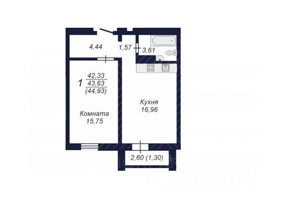 43 м² · Этаж 13 из 15