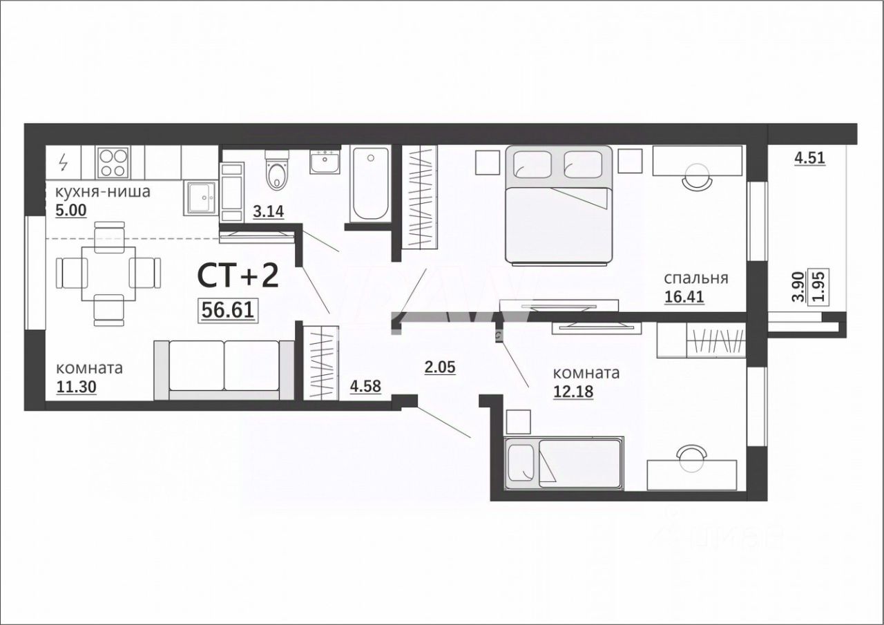 56 м² · Этаж 4 из 10