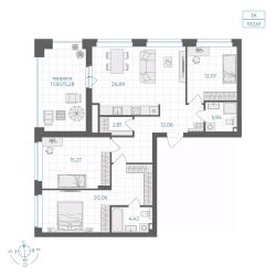 • Наибольшая площадь: 106 м²