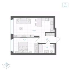 44 м2