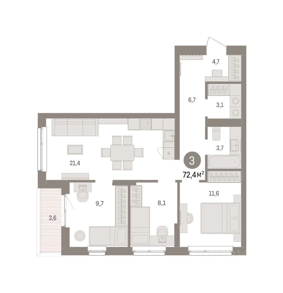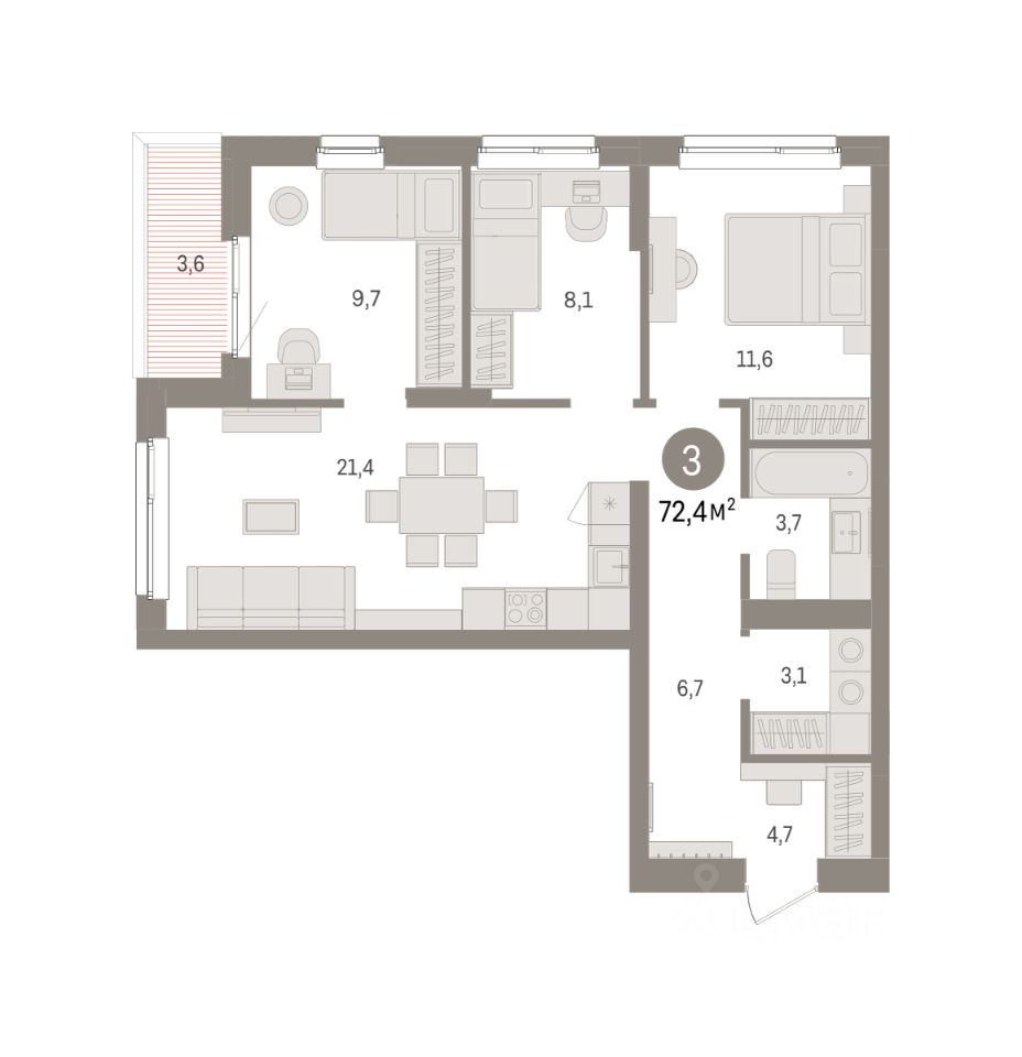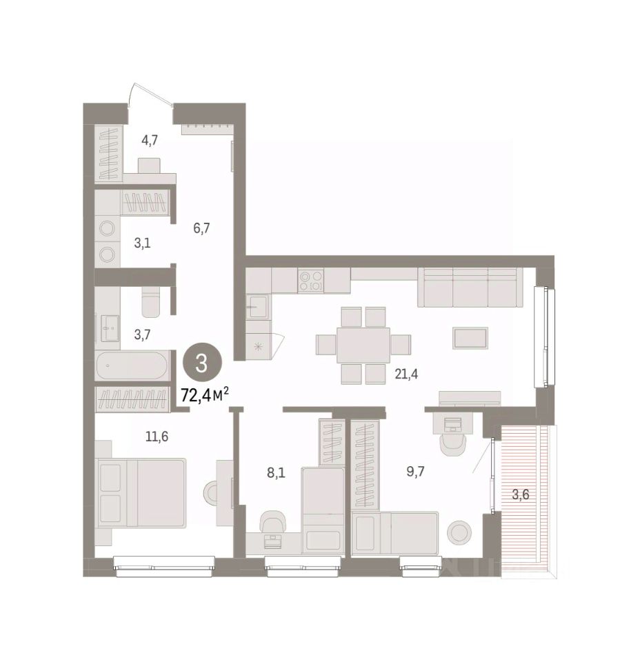 72 м² · Этаж 3 из 8