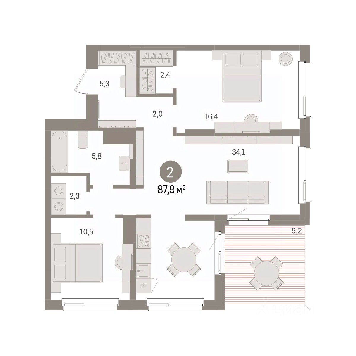 Продается двухкомнатная квартира с предчистовой отделкой в ЖК ''Брусника в Эльтауне'' на 8 этаже. Общая площадь: 87.88 кв.м. Высота потолков 2.7 м. Квартира находится в корпусе 4. Дом монолитный, одноподъездный, высотой 8 этажей. На этаже 7 квартир. В подъезде 1 пассажирский и 1 грузовой лифт. Окончание строительства - 4 квартал 2028 года. Оформление сделки по договору долевого участия. Квартира с кухней-гостиной и двумя спальнями в Брусника в Эльтауне. Особенности планировки: гардеробная, постирочная, разнесённые спальни, терраса на крыше. квартиры в нашей базе: ЛТН01.1-Ж4.8.3. Квартал ''Брусника в Эльтауне'' расположился к северу-западу от Челябинска в окружении лесного массива, рядом с Лебединым прудом и Скалистым озером. Две главных слова, характеризующих Эльтаун, — концентрация и разнообразие. Его структуру формируют сразу несколько типов застройки — коттеджи, таунхаусы, квартиры в мало- и среднеэтажных домах, в перспективе нескольких лет здесь будут открыты десятки кафе, ресторанов, магазинов, аптек, медицинских и фитнес-центров. Для круглогодичного отдыха в городе построят собственный курорт. В Эльтауне будет действовать концепция непрерывного образования. Уже открыт муниципальный детский сад ''Ёлочка'' на 230 мест. В планах — инновационная школа на 1100 учеников. Кроме того, в Эльтауне организован Научно-исследовательский центр девелопмента МBA и МФТИ — одного из лучших вузов страны. Брусника стала полноправным девелопером Эльтауна. Мы построим здесь новый квартал со среднеэтажным жильём, богатым озеленением и разнообразной коммерческой и социальной инфраструктурой. Квартал Брусники расположен на въезде в город и станет его лицом. Недалеко от проекта проходит Новоградский тракт. По нему можно быстро добраться до Челябинска, озёр Увильды, Тургояк, Кисегач и Еловое, горнолыжных курортов ''Солнечная долина'', ''Евразия'' и ''Завьялиха'', парков ''Таганай'' и ''Зюраткуль''. Между Эльтауном и Челябинском курсирует автобус. Количество маршрутов и остановок общественного транспорта будет постоянно увеличиваться. До Челябинска — 5 минут на автомобиле До железнодорожного вокзала — 35 минут До аэропорта — 45 минут Проект Брусники в Эльтауне — комплексная застройка, состоящая из домов высотой не более 8 этажей. Территория Брусники разделена на несколько функциональных зон. Со стороны улицы Павленкова мы спроектировали фронт с коммерцией и приветственными площадями. На первых этажах домов — кафе, магазины, рестораны, кружки и образовательные студии. В глубине квартала расположатся общественные пространства с дождевыми садами, огородами и рощей. Ближе к лесу — пространство, которое мы назвали ''задний двор''. Здесь — игровые лужайки, плейхабы, луг для пикников и йоги, волейбольные площадки, воркаут. В этой же части, на границе квартала, предусмотрена парковка, на которой мы высадим взрослые деревья и кустарники. #zmdc3B