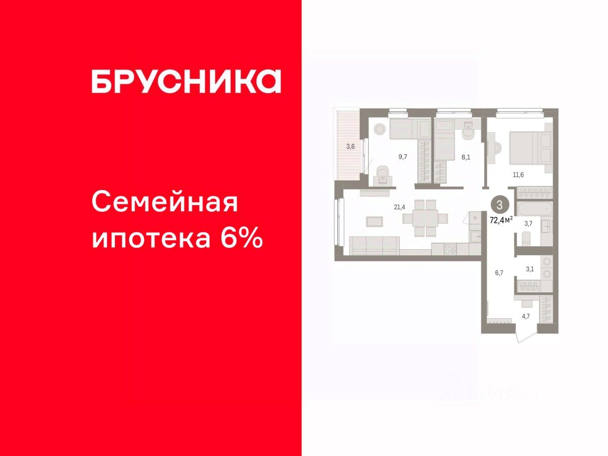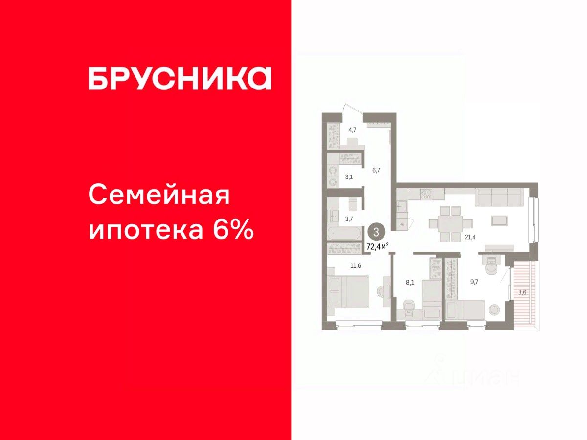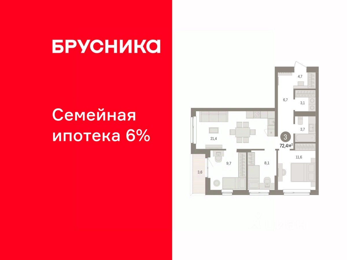 Продается 3-комн. квартира от застройщика с предчистовой отделкой в ЖК ''Брусника в Эльтауне'' на 2 этаже. Общая площадь: 72.4 кв.м. Высота потолков 2.7 м. Квартира находится в корпусе 2. Дом монолитный, одноподъездный, высотой 8 этажей. На этаже 10 квартир. В подъезде 1 пассажирский и 1 грузовой лифт. Окончание строительства - 4 квартал 2028 года. Оформление сделки по договору долевого участия. Квартира с кухней-гостиной и тремя спальнями в Брусника в Эльтауне. Особенности планировки: вид во двор, второй санузел, лоджия, постирочная, разнесённые спальни. квартиры в нашей базе: ЛТН01.1-Ж2.2.7. Квартал ''Брусника в Эльтауне'' расположился к северу-западу от Челябинска в окружении лесного массива, рядом с Лебединым прудом и Скалистым озером. Две главных слова, характеризующих Эльтаун, — концентрация и разнообразие. Его структуру формируют сразу несколько типов застройки — коттеджи, таунхаусы, квартиры в мало- и среднеэтажных домах, в перспективе нескольких лет здесь будут открыты десятки кафе, ресторанов, магазинов, аптек, медицинских и фитнес-центров. Для круглогодичного отдыха в городе построят собственный курорт. В Эльтауне будет действовать концепция непрерывного образования. Уже открыт муниципальный детский сад ''Ёлочка'' на 230 мест. В планах — инновационная школа на 1100 учеников. Кроме того, в Эльтауне организован Научно-исследовательский центр девелопмента МBA и МФТИ — одного из лучших вузов страны. Брусника стала полноправным девелопером Эльтауна. Мы построим здесь новый квартал со среднеэтажным жильём, богатым озеленением и разнообразной коммерческой и социальной инфраструктурой. Квартал Брусники расположен на въезде в город и станет его лицом. Недалеко от проекта проходит Новоградский тракт. По нему можно быстро добраться до Челябинска, озёр Увильды, Тургояк, Кисегач и Еловое, горнолыжных курортов ''Солнечная долина'', ''Евразия'' и ''Завьялиха'', парков ''Таганай'' и ''Зюраткуль''. Между Эльтауном и Челябинском курсирует автобус. Количество маршрутов и остановок общественного транспорта будет постоянно увеличиваться. До Челябинска — 5 минут на автомобиле До железнодорожного вокзала — 35 минут До аэропорта — 45 минут Проект Брусники в Эльтауне — комплексная застройка, состоящая из домов высотой не более 8 этажей. Территория Брусники разделена на несколько функциональных зон. Со стороны улицы Павленкова мы спроектировали фронт с коммерцией и приветственными площадями. На первых этажах домов — кафе, магазины, рестораны, кружки и образовательные студии. В глубине квартала расположатся общественные пространства с дождевыми садами, огородами и рощей. Ближе к лесу — пространство, которое мы назвали ''задний двор''. Здесь — игровые лужайки, плейхабы, луг для пикников и йоги, волейбольные площадки, воркаут. В этой же части, на границе квартала, предусмотрена парковка, на которой мы высадим взрослые деревья и кустарники. #zmdcWo