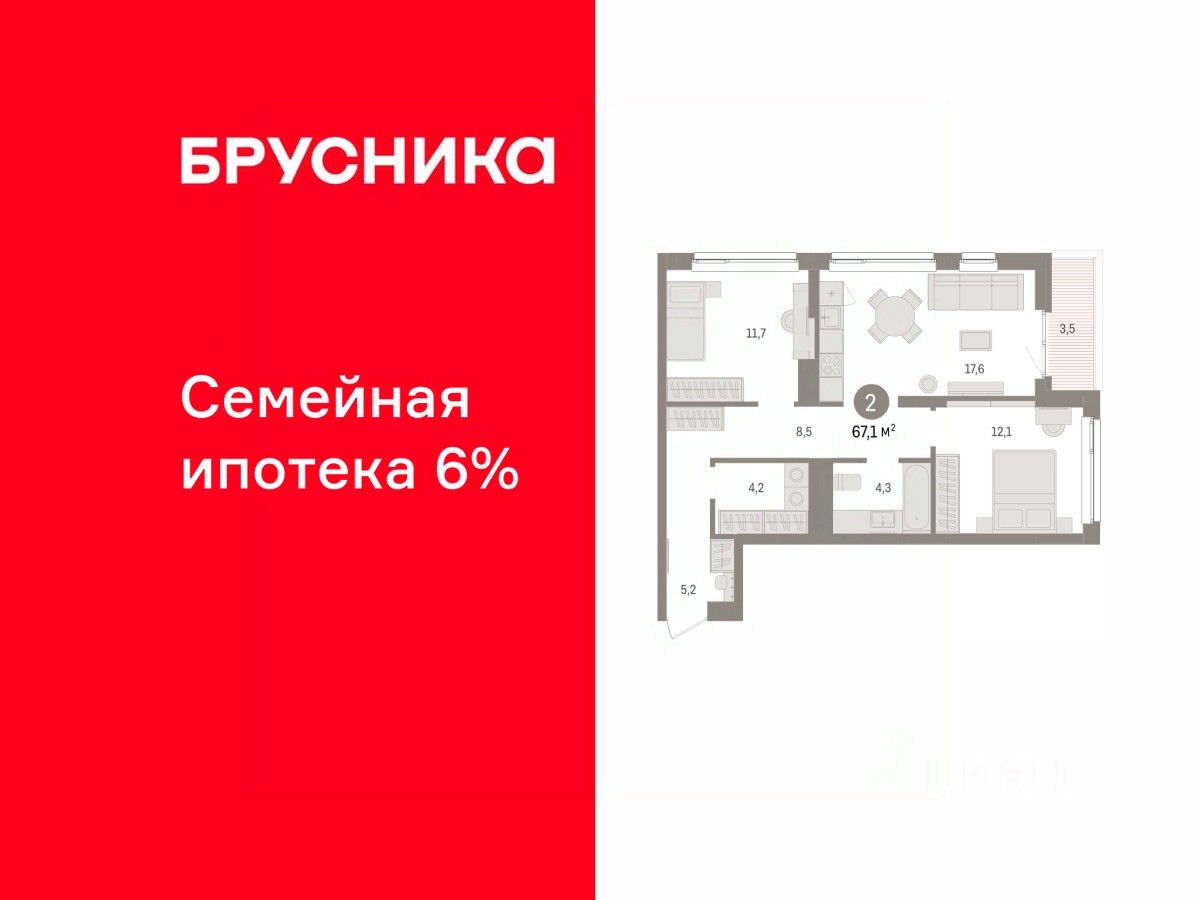 Двухкомнатная квартира от застройщика с предчистовой отделкой в ЖК ''Брусника в Эльтауне'' на 4 этаже. Общая площадь: 67.19 кв.м., жилая: 23.8 кв.м., площадь просторной кухни-гостиной: 17.6 кв.м. Квартира угловая, окна oбecпeчивaют paвнoмepнoe ocвeщeниe в тeчeниe дня. В квартире одна лоджия, один совмещенный санузел. Высота потолков 2.7 м. Квартира находится в корпусе 4. Дом монолитный, одноподъездный, высотой 8 этажей. На этаже 7 квартир. В подъезде 1 пассажирский и 1 грузовой лифт. Окончание строительства - 4 квартал 2028 года. Оформление сделки по договору долевого участия. Квартира с кухней-гостиной и двумя спальнями в Брусника в Эльтауне. Особенности планировки: лоджия, постирочная, разнесённые спальни. квартиры в нашей базе: ЛТН01.1-Ж4.4.9. Квартал ''Брусника в Эльтауне'' расположился к северу-западу от Челябинска в окружении лесного массива, рядом с Лебединым прудом и Скалистым озером. Две главных слова, характеризующих Эльтаун, — концентрация и разнообразие. Его структуру формируют сразу несколько типов застройки — коттеджи, таунхаусы, квартиры в мало- и среднеэтажных домах, в перспективе нескольких лет здесь будут открыты десятки кафе, ресторанов, магазинов, аптек, медицинских и фитнес-центров. Для круглогодичного отдыха в городе построят собственный курорт. В Эльтауне будет действовать концепция непрерывного образования. Уже открыт муниципальный детский сад ''Ёлочка'' на 230 мест. В планах — инновационная школа на 1100 учеников. Кроме того, в Эльтауне организован Научно-исследовательский центр девелопмента МBA и МФТИ — одного из лучших вузов страны. Брусника стала полноправным девелопером Эльтауна. Мы построим здесь новый квартал со среднеэтажным жильём, богатым озеленением и разнообразной коммерческой и социальной инфраструктурой. Квартал Брусники расположен на въезде в город и станет его лицом. Недалеко от проекта проходит Новоградский тракт. По нему можно быстро добраться до Челябинска, озёр Увильды, Тургояк, Кисегач и Еловое, горнолыжных курортов ''Солнечная долина'', ''Евразия'' и ''Завьялиха'', парков ''Таганай'' и ''Зюраткуль''. Между Эльтауном и Челябинском курсирует автобус. Количество маршрутов и остановок общественного транспорта будет постоянно увеличиваться. До Челябинска — 5 минут на автомобиле До железнодорожного вокзала — 35 минут До аэропорта — 45 минут Проект Брусники в Эльтауне — комплексная застройка, состоящая из домов высотой не более 8 этажей. Территория Брусники разделена на несколько функциональных зон. Со стороны улицы Павленкова мы спроектировали фронт с коммерцией и приветственными площадями. На первых этажах домов — кафе, магазины, рестораны, кружки и образовательные студии. В глубине квартала расположатся общественные пространства с дождевыми садами, огородами и рощей. Ближе к лесу — пространство, которое мы назвали ''задний двор''. Здесь — игровые лужайки, плейхабы, луг для пикников и йоги, волейбольные площадки, воркаут. В этой же части, на границе квартала, предусмотрена парковка, на которой мы высадим