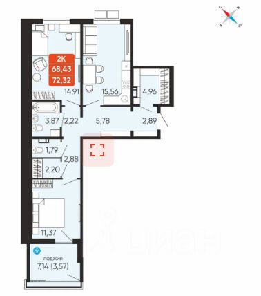 57 м² · Этаж 12 из 15