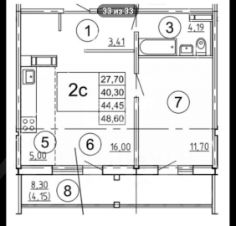 43 м2