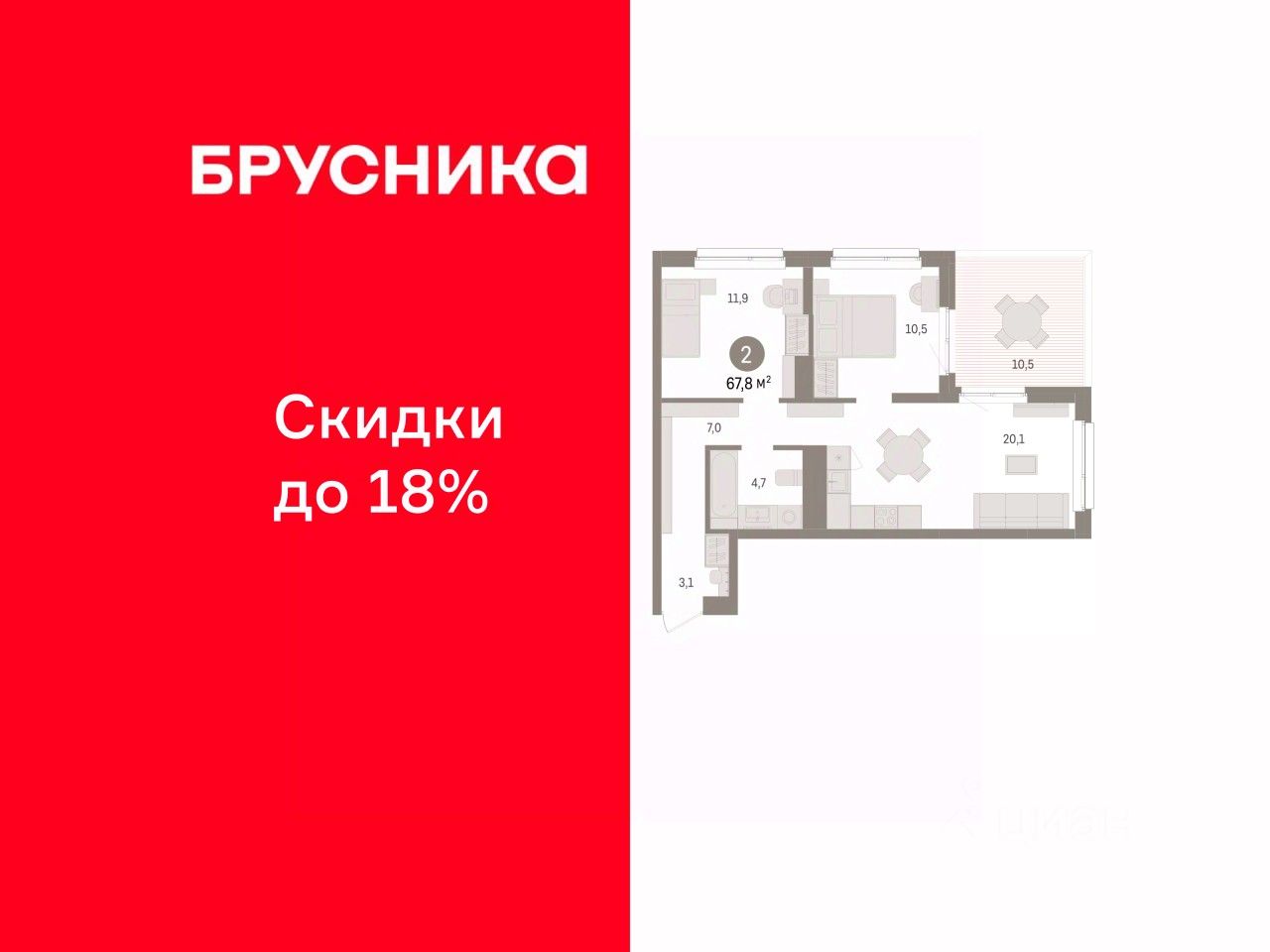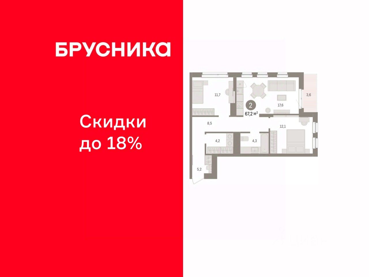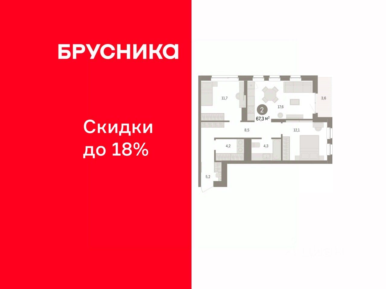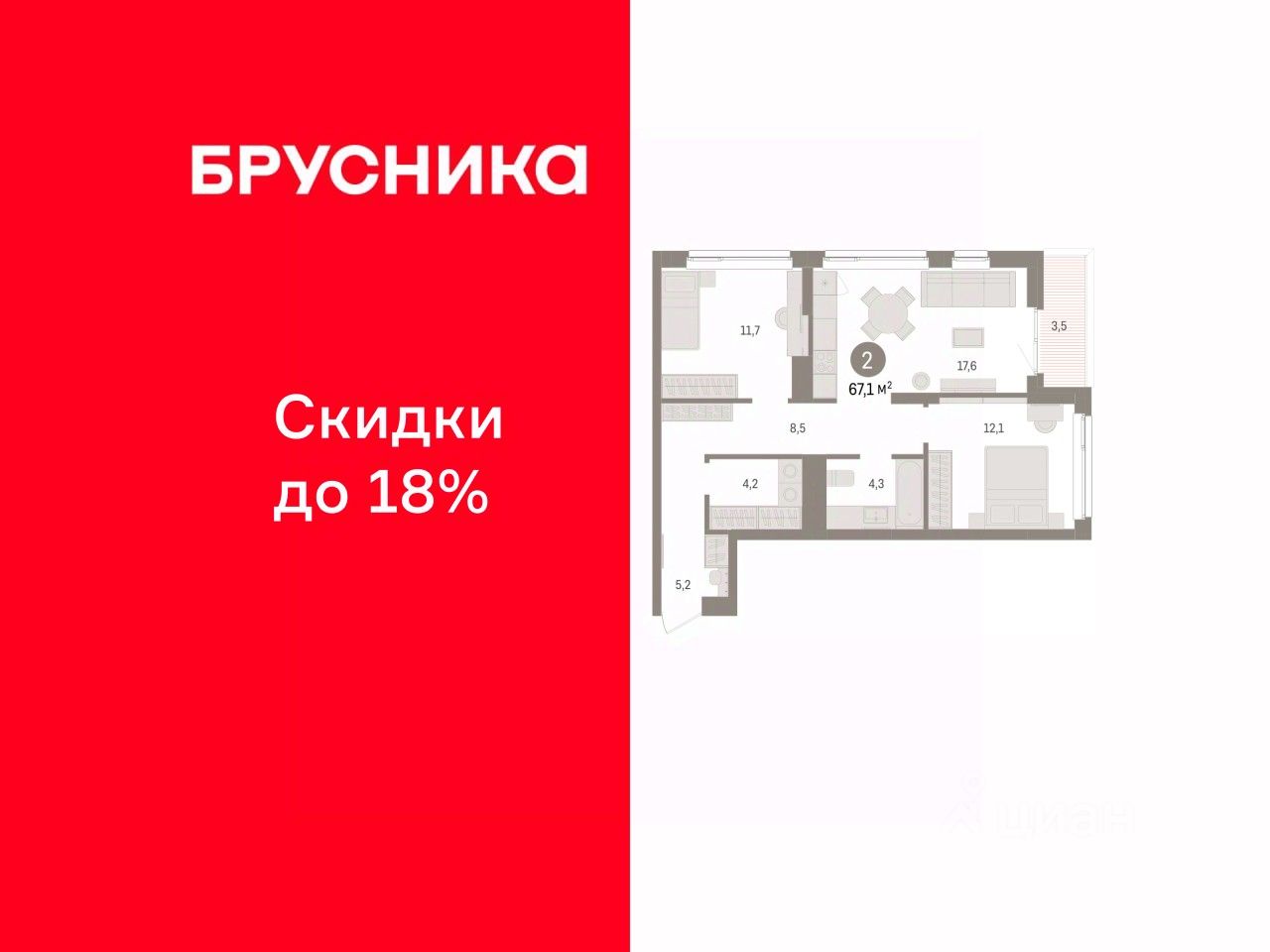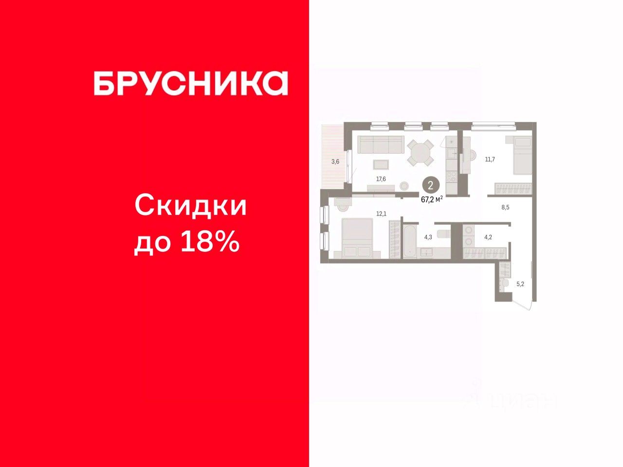 Просторная двухкомнатная квартира с предчистовой отделкой в ЖК ''Брусника в Эльтауне'' на 4 этаже. Общая площадь: 67.19 кв.м., жилая: 23.8 кв.м., площадь просторной кухни-гостиной: 17.6 кв.м. Угловая квартира, очень светлая, естественная вентиляция при открытии окон. В квартире одна лоджия, один совмещенный санузел. Высота потолков 2.7 м. Квартира находится в корпусе 4. Дом монолитный, одноподъездный, высотой 8 этажей. На этаже 7 квартир. В подъезде 1 пассажирский и 1 грузовой лифт. Окончание строительства - 4 квартал 2028 года. Оформление сделки по договору долевого участия. Квартира с кухней-гостиной и двумя спальнями в Брусника в Эльтауне. Особенности планировки: лоджия, постирочная, разнесённые спальни. квартиры в нашей базе: ЛТН01.1-Ж4.4.9. Квартал ''Брусника в Эльтауне'' расположился к северу-западу от Челябинска в окружении лесного массива, рядом с Лебединым прудом и Скалистым озером. Две главных слова, характеризующих Эльтаун, — концентрация и разнообразие. Его структуру формируют сразу несколько типов застройки — коттеджи, таунхаусы, квартиры в мало- и среднеэтажных домах, в перспективе нескольких лет здесь будут открыты десятки кафе, ресторанов, магазинов, аптек, медицинских и фитнес-центров. Для круглогодичного отдыха в городе построят собственный курорт. В Эльтауне будет действовать концепция непрерывного образования. Уже открыт муниципальный детский сад ''Ёлочка'' на 230 мест. В планах — инновационная школа на 1100 учеников. Кроме того, в Эльтауне организован Научно-исследовательский центр девелопмента МBA и МФТИ — одного из лучших вузов страны. Брусника стала полноправным девелопером Эльтауна. Мы построим здесь новый квартал со среднеэтажным жильём, богатым озеленением и разнообразной коммерческой и социальной инфраструктурой. Квартал Брусники расположен на въезде в город и станет его лицом. Недалеко от проекта проходит Новоградский тракт. По нему можно быстро добраться до Челябинска, озёр Увильды, Тургояк, Кисегач и Еловое, горнолыжных курортов ''Солнечная долина'', ''Евразия'' и ''Завьялиха'', парков ''Таганай'' и ''Зюраткуль''. Между Эльтауном и Челябинском курсирует автобус. Количество маршрутов и остановок общественного транспорта будет постоянно увеличиваться. До Челябинска — 5 минут на автомобиле До железнодорожного вокзала — 35 минут До аэропорта — 45 минут Проект Брусники в Эльтауне — комплексная застройка, состоящая из домов высотой не более 8 этажей. Территория Брусники разделена на несколько функциональных зон. Со стороны улицы Павленкова мы спроектировали фронт с коммерцией и приветственными площадями. На первых этажах домов — кафе, магазины, рестораны, кружки и образовательные студии. В глубине квартала расположатся общественные пространства с дождевыми садами, огородами и рощей. Ближе к лесу — пространство, которое мы назвали ''задний двор''. Здесь — игровые лужайки, плейхабы, луг для пикников и йоги, волейбольные площадки, воркаут. В этой же части, на границе квартала, предусмотрена парковка, на которой мы высадим в