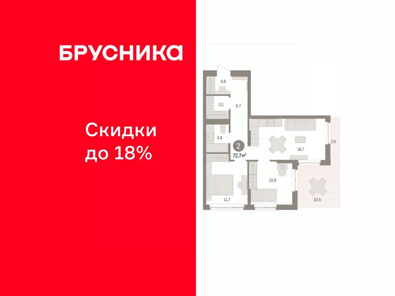 Двухкомнатная квартира от застройщика с предчистовой отделкой в ЖК ''Брусника в Эльтауне'' на 7 этаже. Общая площадь: 72.72 кв.м., жилая: 22.5 кв.м., площадь просторной кухни-гостиной: 18.7 кв.м. Угловая квартира, окна oбecпeчивaют paвнoмepнoe ocвeщeниe в тeчeниe дня. В квартире один балкон, один совмещенный санузел. Наличие в квартире террасы дает возможность для создания зон отдыха в кругу семьи и друзей. Высота потолков 2.7 м. Квартира находится в корпусе 5. Дом монолитный, одноподъездный, высотой 7 этажей. На этаже 8 квартир. В подъезде 1 пассажирский и 1 грузовой лифт. Окончание строительства - 4 квартал 2028 года. Оформление сделки по договору долевого участия. Квартира с кухней-гостиной и двумя спальнями в Брусника в Эльтауне. Особенности планировки: вид во двор, постирочная, разнесённые спальни, терраса на крыше. квартиры в нашей базе: ЛТН01.1-Ж10.7.5. Квартал ''Брусника в Эльтауне'' расположился к северу-западу от Челябинска в окружении лесного массива, рядом с Лебединым прудом и Скалистым озером. Две главных слова, характеризующих Эльтаун, — концентрация и разнообразие. Его структуру формируют сразу несколько типов застройки — коттеджи, таунхаусы, квартиры в мало- и среднеэтажных домах, в перспективе нескольких лет здесь будут открыты десятки кафе, ресторанов, магазинов, аптек, медицинских и фитнес-центров. Для круглогодичного отдыха в городе построят собственный курорт. В Эльтауне будет действовать концепция непрерывного образования. Уже открыт муниципальный детский сад ''Ёлочка'' на 230 мест. В планах — инновационная школа на 1100 учеников. Кроме того, в Эльтауне организован Научно-исследовательский центр девелопмента МBA и МФТИ — одного из лучших вузов страны. Брусника стала полноправным девелопером Эльтауна. Мы построим здесь новый квартал со среднеэтажным жильём, богатым озеленением и разнообразной коммерческой и социальной инфраструктурой. Квартал Брусники расположен на въезде в город и станет его лицом. Недалеко от проекта проходит Новоградский тракт. По нему можно быстро добраться до Челябинска, озёр Увильды, Тургояк, Кисегач и Еловое, горнолыжных курортов ''Солнечная долина'', ''Евразия'' и ''Завьялиха'', парков ''Таганай'' и ''Зюраткуль''. Между Эльтауном и Челябинском курсирует автобус. Количество маршрутов и остановок общественного транспорта будет постоянно увеличиваться. До Челябинска — 5 минут на автомобиле До железнодорожного вокзала — 35 минут До аэропорта — 45 минут Проект Брусники в Эльтауне — комплексная застройка, состоящая из домов высотой не более 8 этажей. Территория Брусники разделена на несколько функциональных зон. Со стороны улицы Павленкова мы спроектировали фронт с коммерцией и приветственными площадями. На первых этажах домов — кафе, магазины, рестораны, кружки и образовательные студии. В глубине квартала расположатся общественные пространства с дождевыми садами, огородами и рощей. Ближе к лесу — пространство, которое мы назвали ''задний двор''. Здесь — игровые лужайки, плейхабы, луг для пикников и йоги,