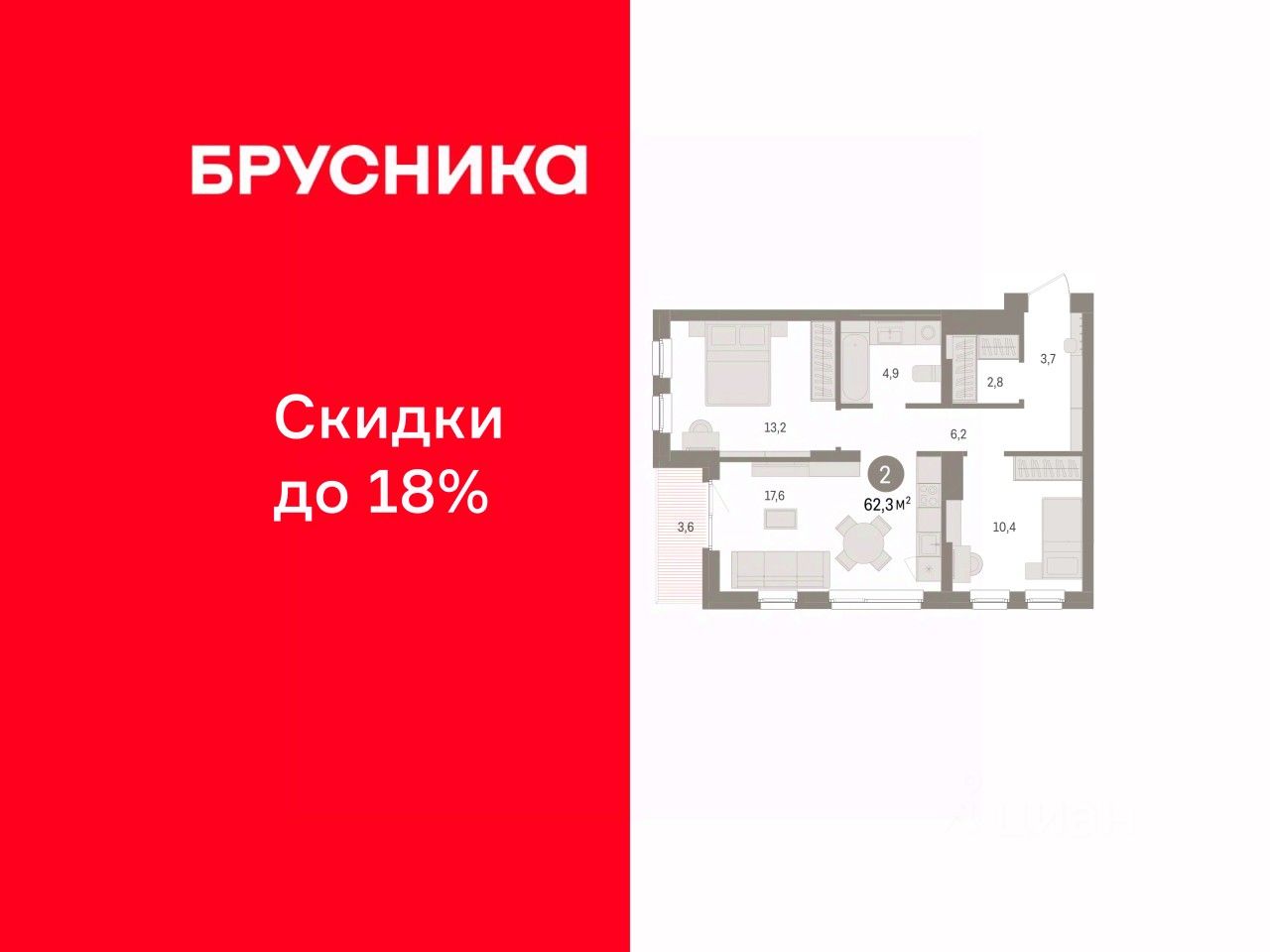62 м² · Этаж 6 из 8