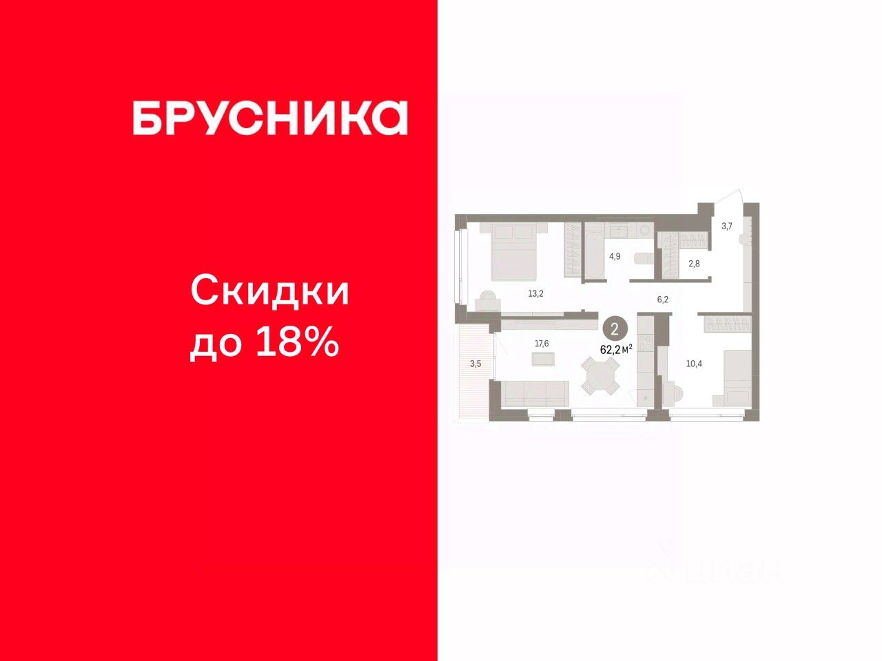 62 м² · Этаж 4 из 8