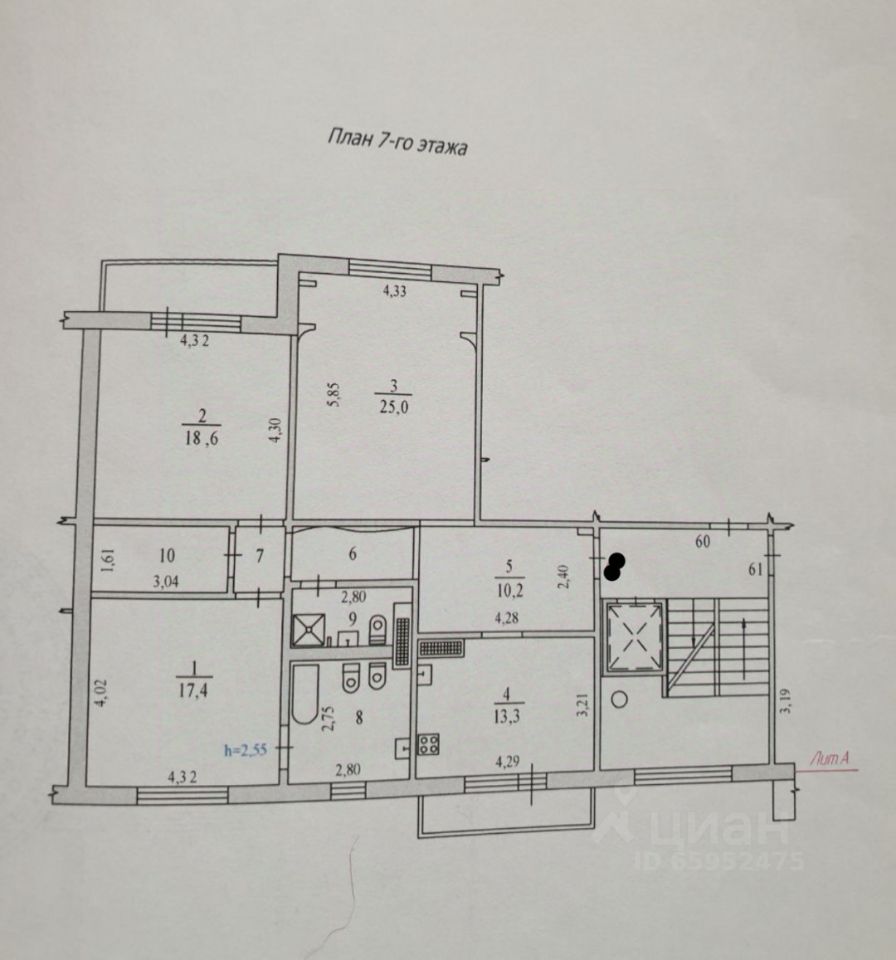 55 м² · Этаж 9 из 9