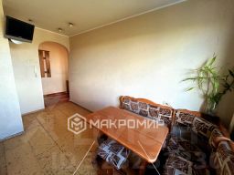 Квартира находится на перекрестке оживленных улиц, с возможностью добраться в любое место города практически без пересадок.Богатая инфраструктура, магазины, салоны красоты, школа и детский сад в пешей доступности без пересечения проезжей части.Порядочная управляющая компания, следит за состоянием двора и подъездов. В этом году произведена замена бойлера.Квартира в общей долевой собственности, не трёх собственников.Соседи спокойные. Просторная лоджия, с остеклением заглушающим шум от проезжей части, выходит на южную сторону, вместительная кладовая. Ремонт косметический. Два пластиковых окна, на кухне и в спальне.