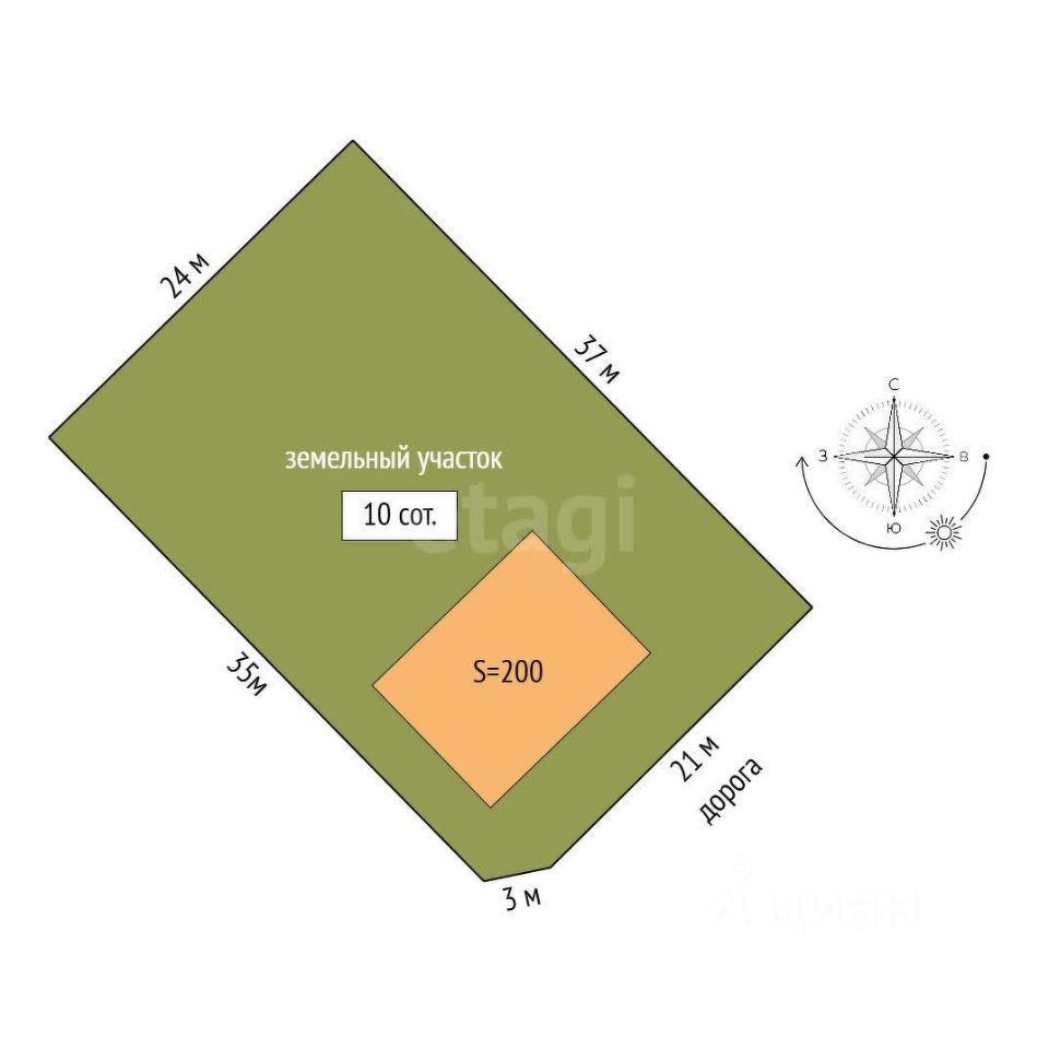 Дом 200 м² · 10 соток · 2 этажа