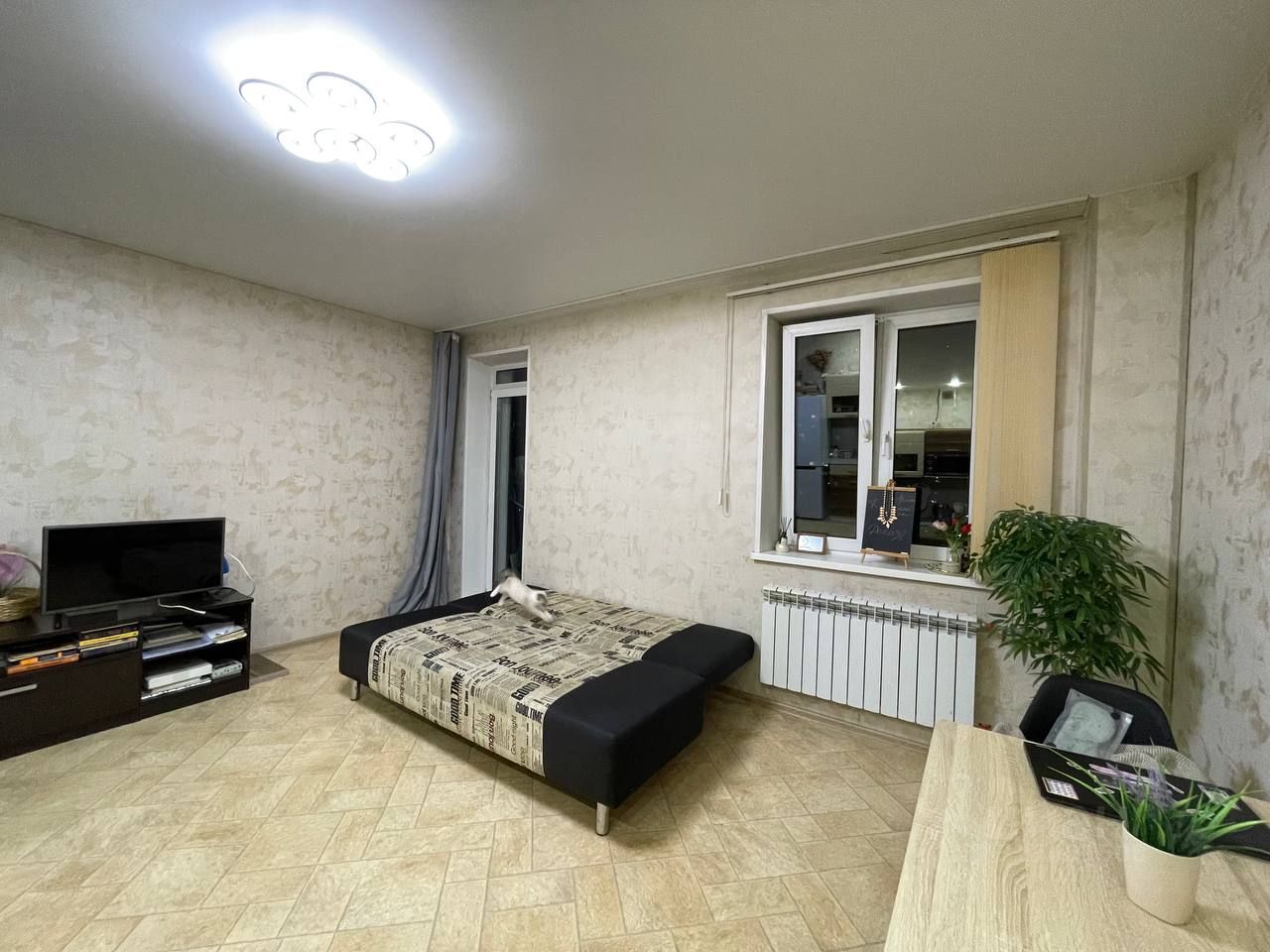 На длительный срок сдаётся уютная студия в районе Академ Риверсайд. В квартире есть всё для комфортного проживания: плита, вместительный холодильник, диван-кровать с отсеком для вещей, утюг с гладильной доской, посуда, стиральная машина. Есть обеденный стол и полноценное рабочее место. В коридоре вместительный шкаф, вешалка. Квартира тёплая и светлая. Летом на балконе можно устроить теплицу, хорошо растут укроп, горох :) В шаговой доступности находятся магазины, школа, ЧелГУ, ботанический сад, современная прогулочная аллея. В соседних домах есть ветклиника и государственная поликлиника для взрослых Полимедика, к которой можно прикрепиться. Хорошая транспортная развязка, 20 минут до Площади Революции на общественном транспорте. Идеально подойдёт для тех, кто учитывает интересы двух человек. Коммунальные платежи будут 2500-3000 ?. Залог 10 000 ? возвращается при условии сохранения квартиры в первозданном виде. 5000 ? из залога удерживаются на оплату клининга, если квартира при выселении требует уборки. Собственник, сдаём по договору. Риелторов просьба не беспокоить. В субаренду сдавать запрещено. С животными и детьми заселяем по договорённости. Без шумных вечеринок, не курить. Телефон: P.S. Котик, напольный цветок и телевизор позировали для фото, они съедут