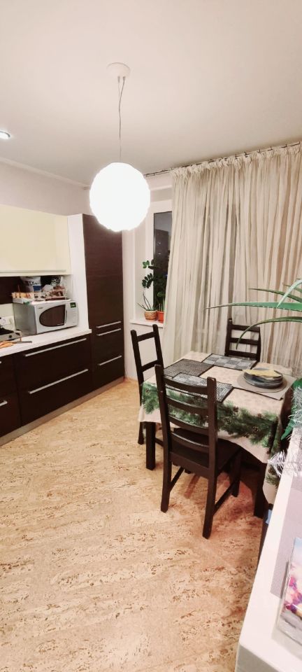 В квартире просторный коридор, совмещенная кухня и гостинная позволяют ощутить уют и практичность. Наличие 2х санузлов, 2 лоджий дополняют общую обстановку. Санузлы оснащены водонагревателями, кафель, сантехника в отличном состоянии, лоджии остеклены и обшиты деревом.