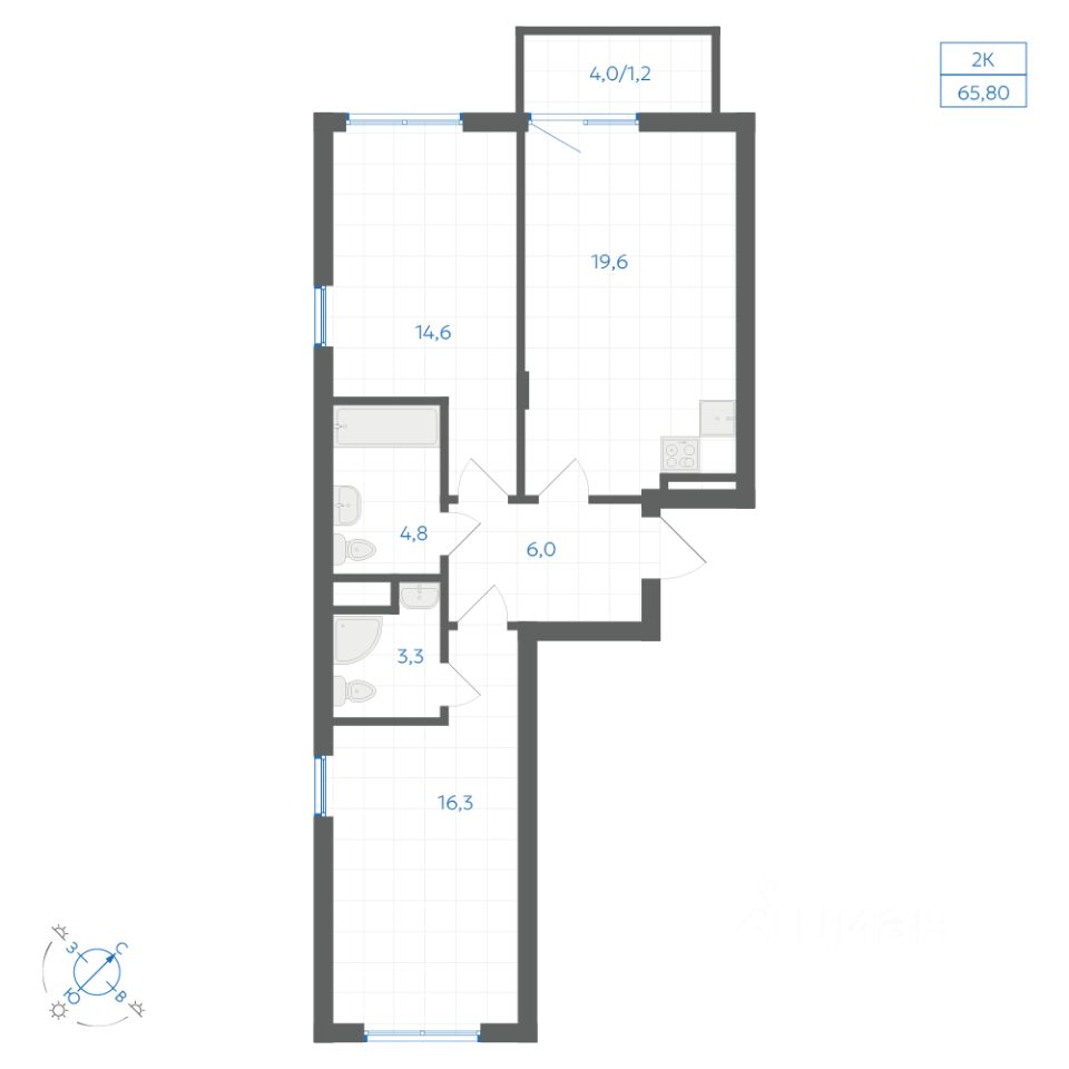 Общая площадь65,8 м2