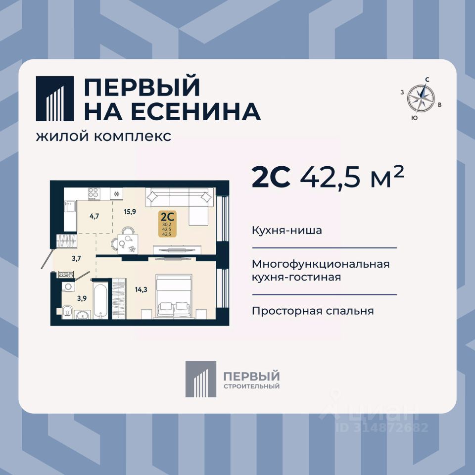 В доме только двух и трехкомнатные квартиры